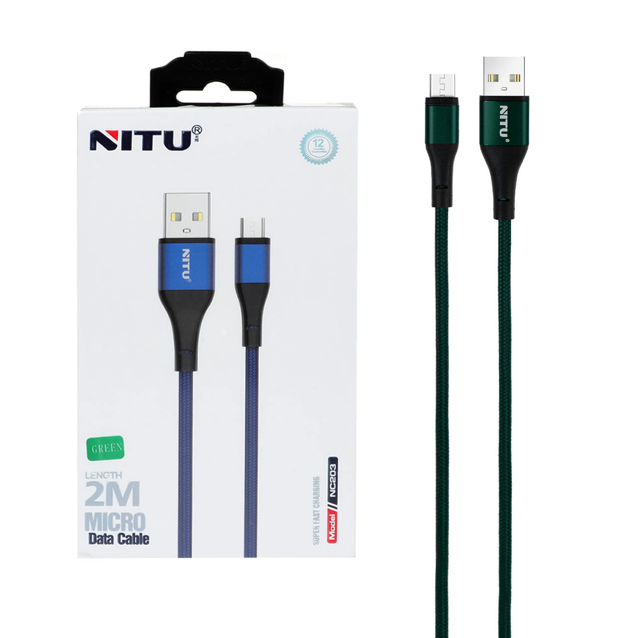 کابل شارژ فست 2 متری اندروید NITU مدل NC203 - سبز