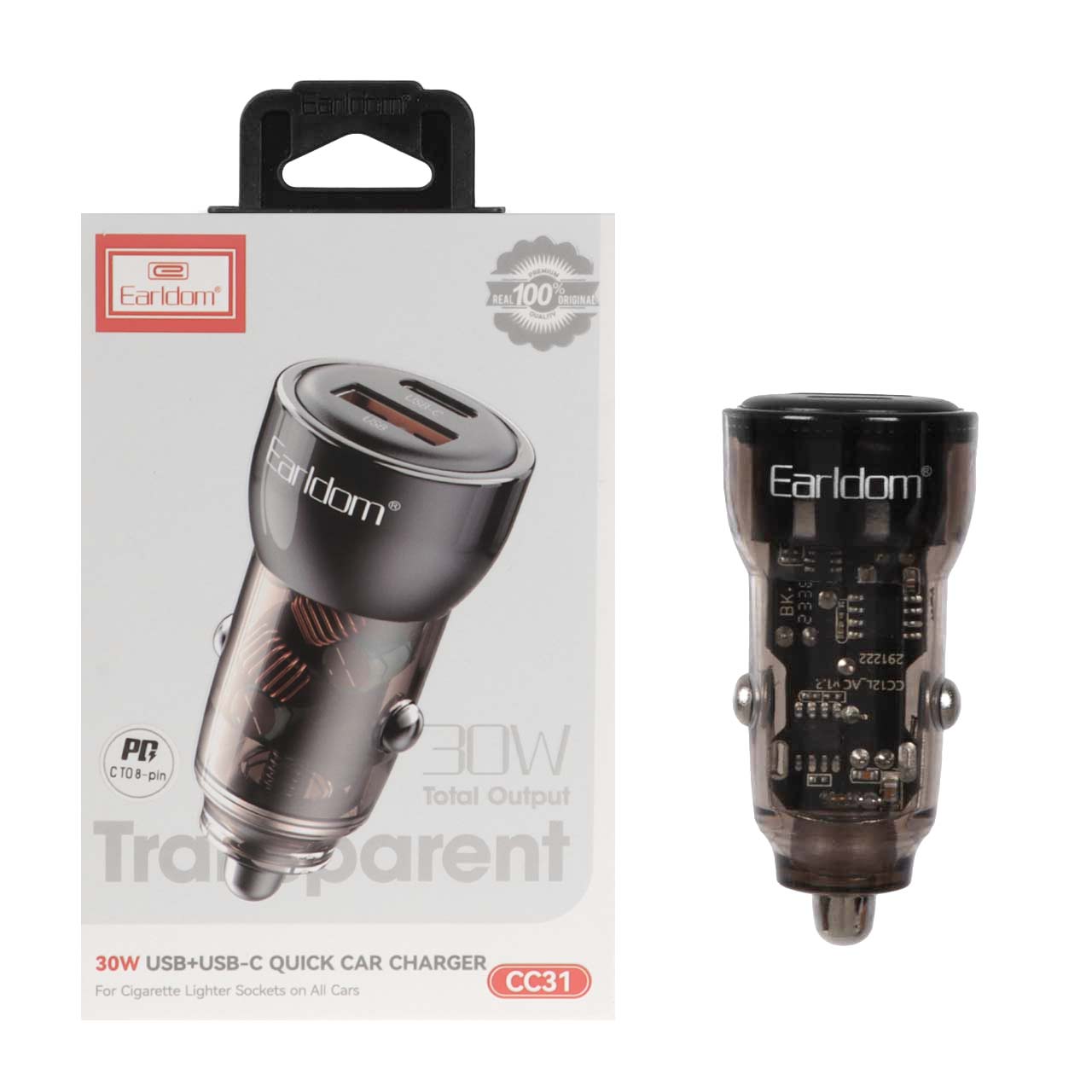 شارژر فندکی PD و فست دو پورت Earldom مدل CC31 به همراه کابل شارژ Type-C To Lightning - مشکی