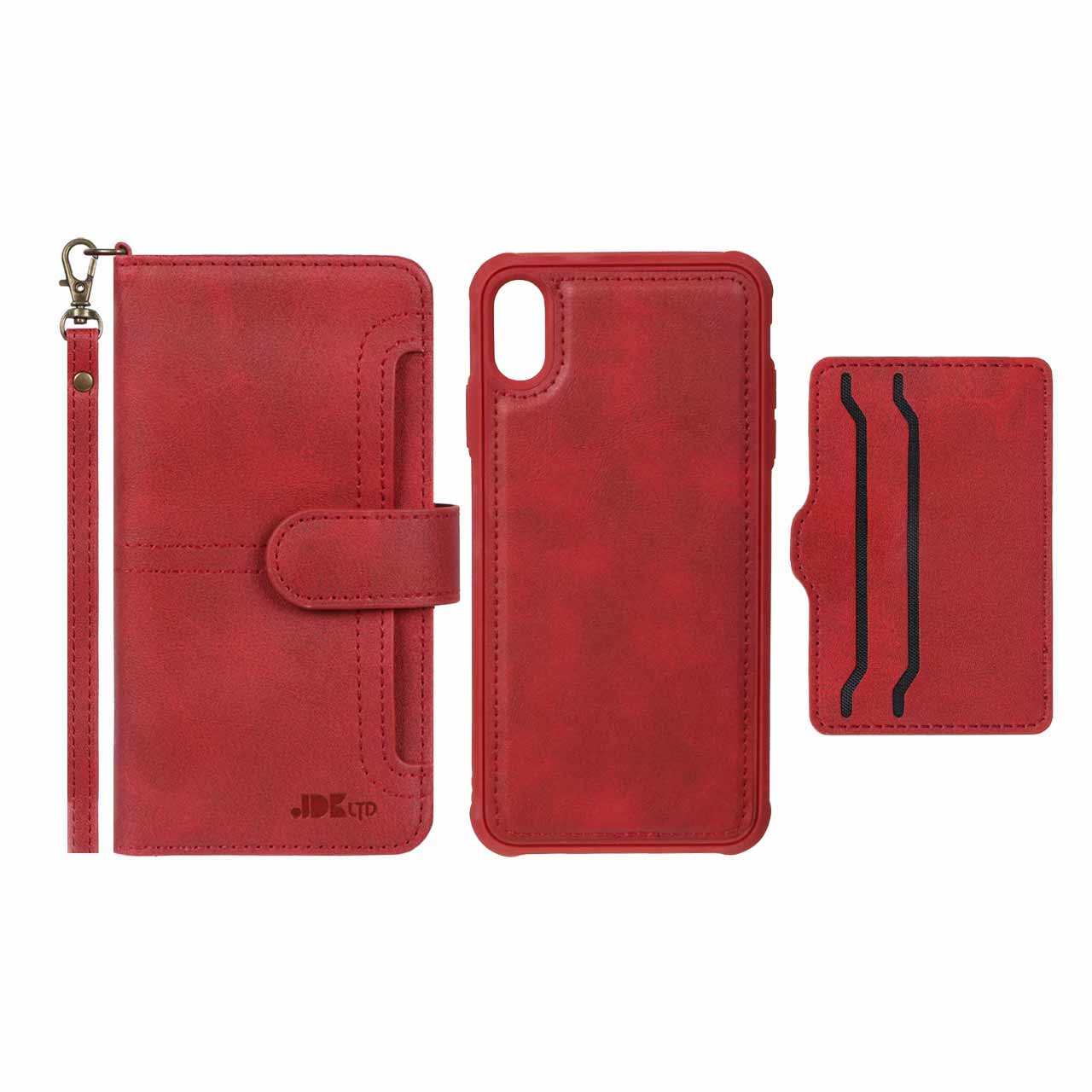 کیف موبایل مگنتی JDK با ست بند و جاکارتی Apple iPhone X Max / iPhone XS Max - قرمز (پک دار)