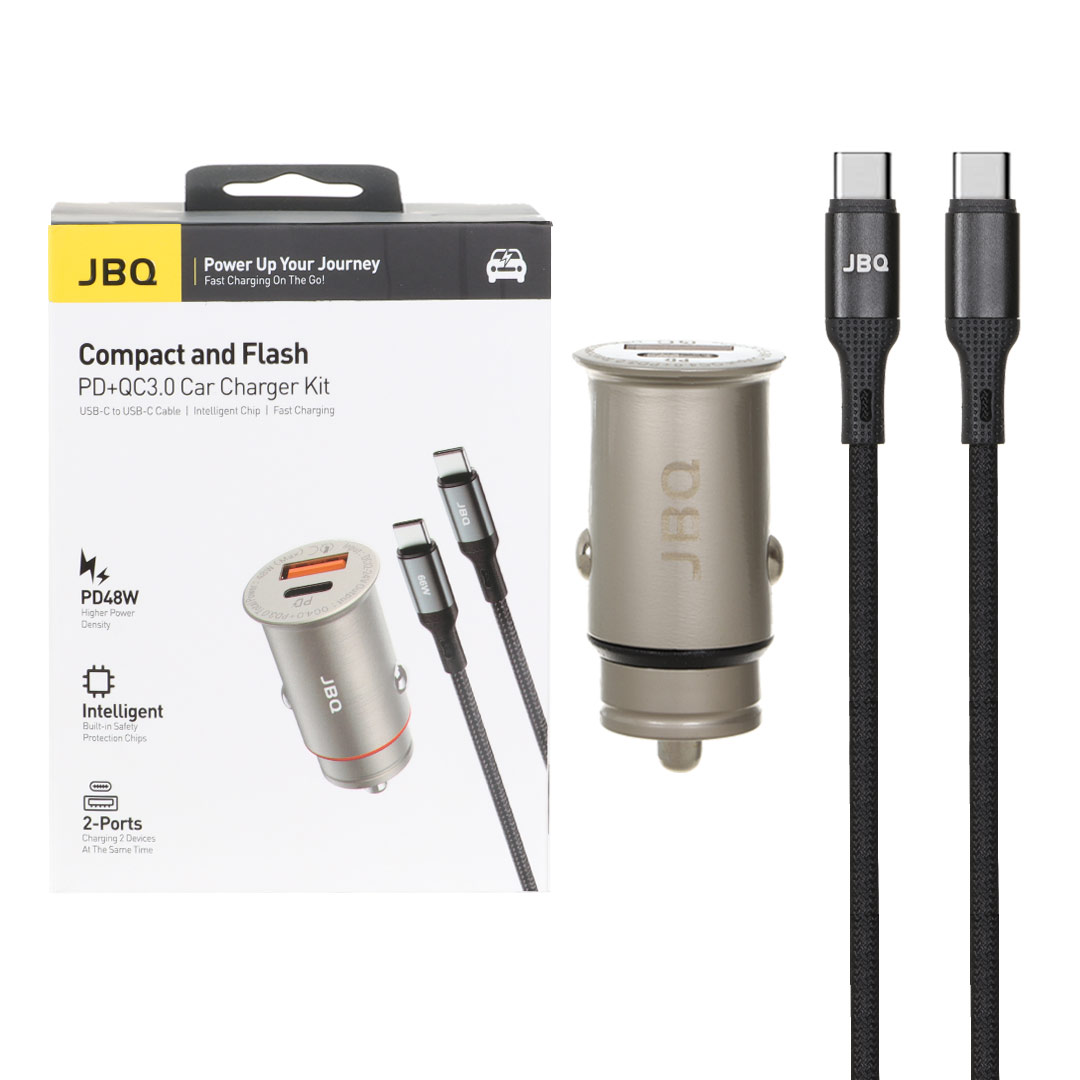 شارژر فندکی PD و فست دو پورت JBQ مدل C393094 48W به همراه کابل شارژ Type-C To Type-C - قهوه ای (گارانتی یکساله رصاصی)