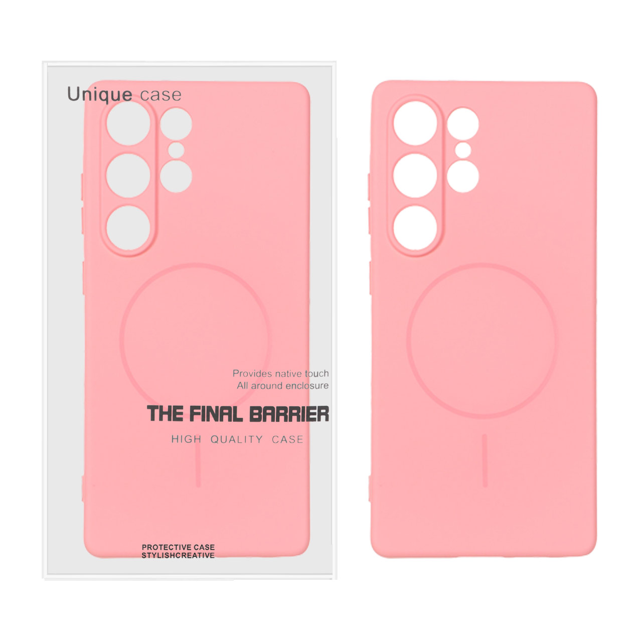 قاب سیلیکونی MagSafe محافظ لنزدار Samsung Galaxy S25 Ultra - صورتی (پک دار)