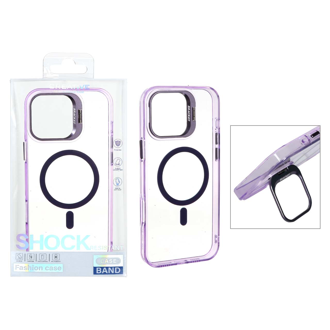 قاب اورجینال Bracket کریستالی MagSafe لنز آلومینیومی Apple iPhone 16 Pro Max - بنفش (پک دار)