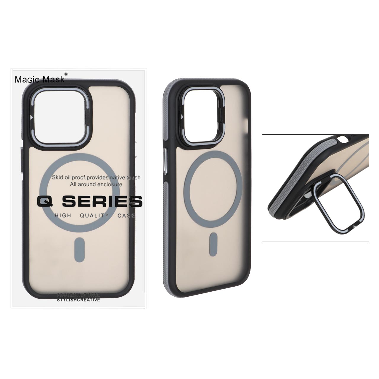 قاب Q Series مات MagSafe استندشو Apple iPhone 13 Pro - خاکستری (پک دار)