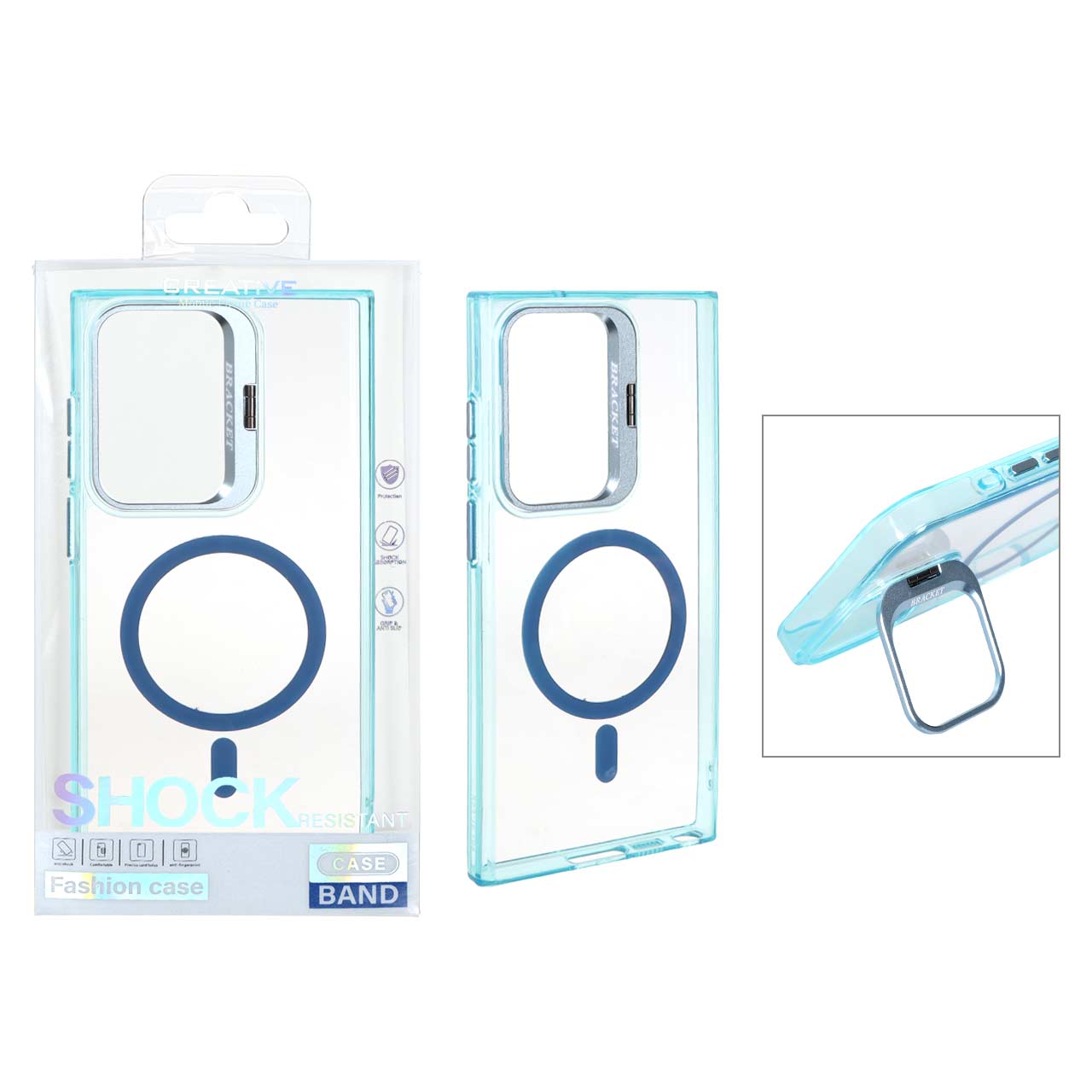 قاب اورجینال Bracket کریستالی MagSafe لنز آلومینیومی Samsung Galaxy S23 Ultra - سبزآبی (پک دار)