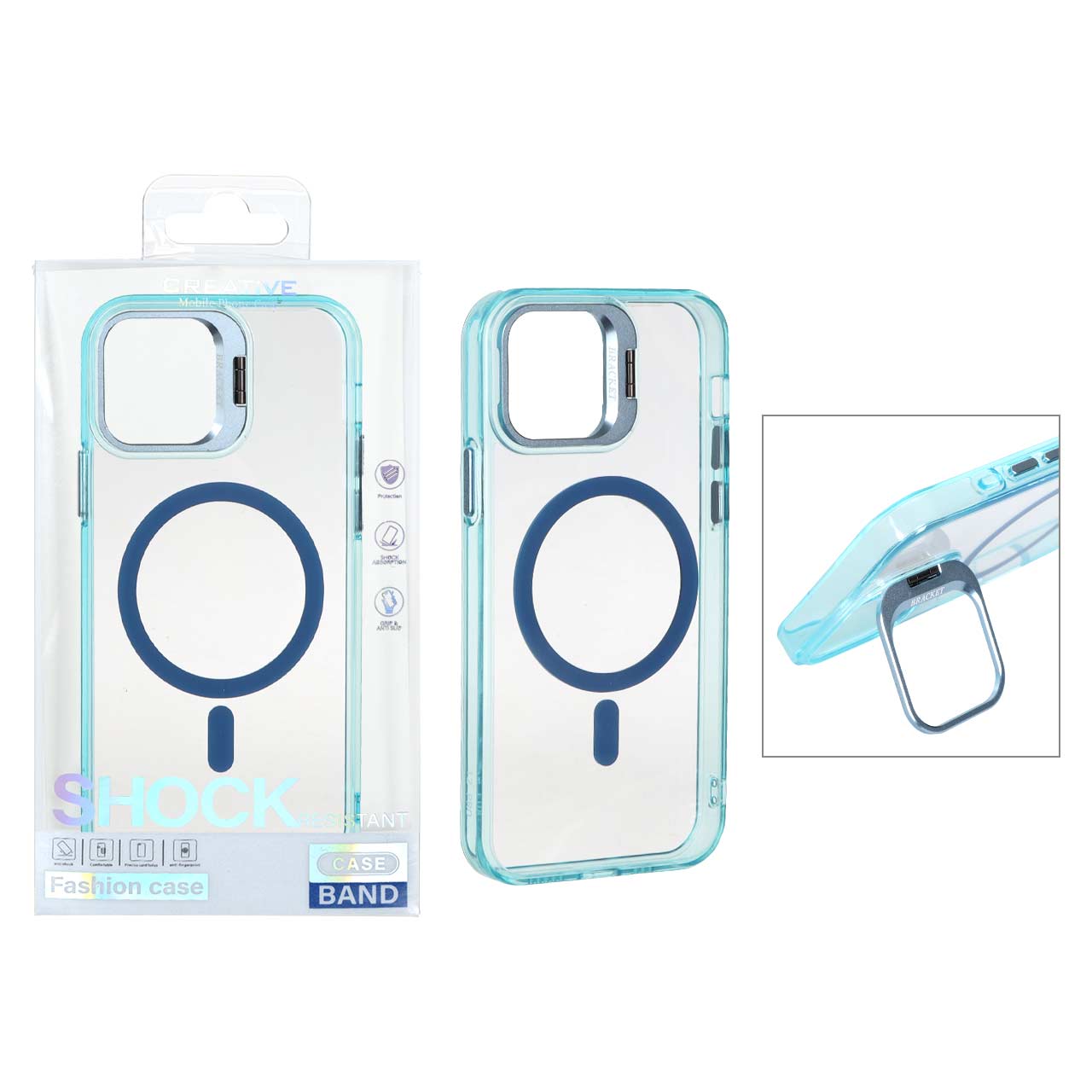 قاب اورجینال Bracket کریستالی MagSafe لنز آلومینیومی Apple iPhone 12 Pro / iPhone 12 - سبزآبی (پک دار)