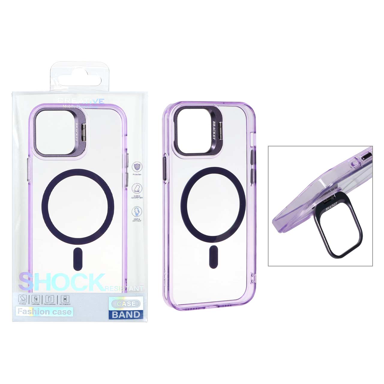 قاب اورجینال Bracket کریستالی MagSafe لنز آلومینیومی Apple iPhone 12 Pro / iPhone 12 - بنفش (پک دار)