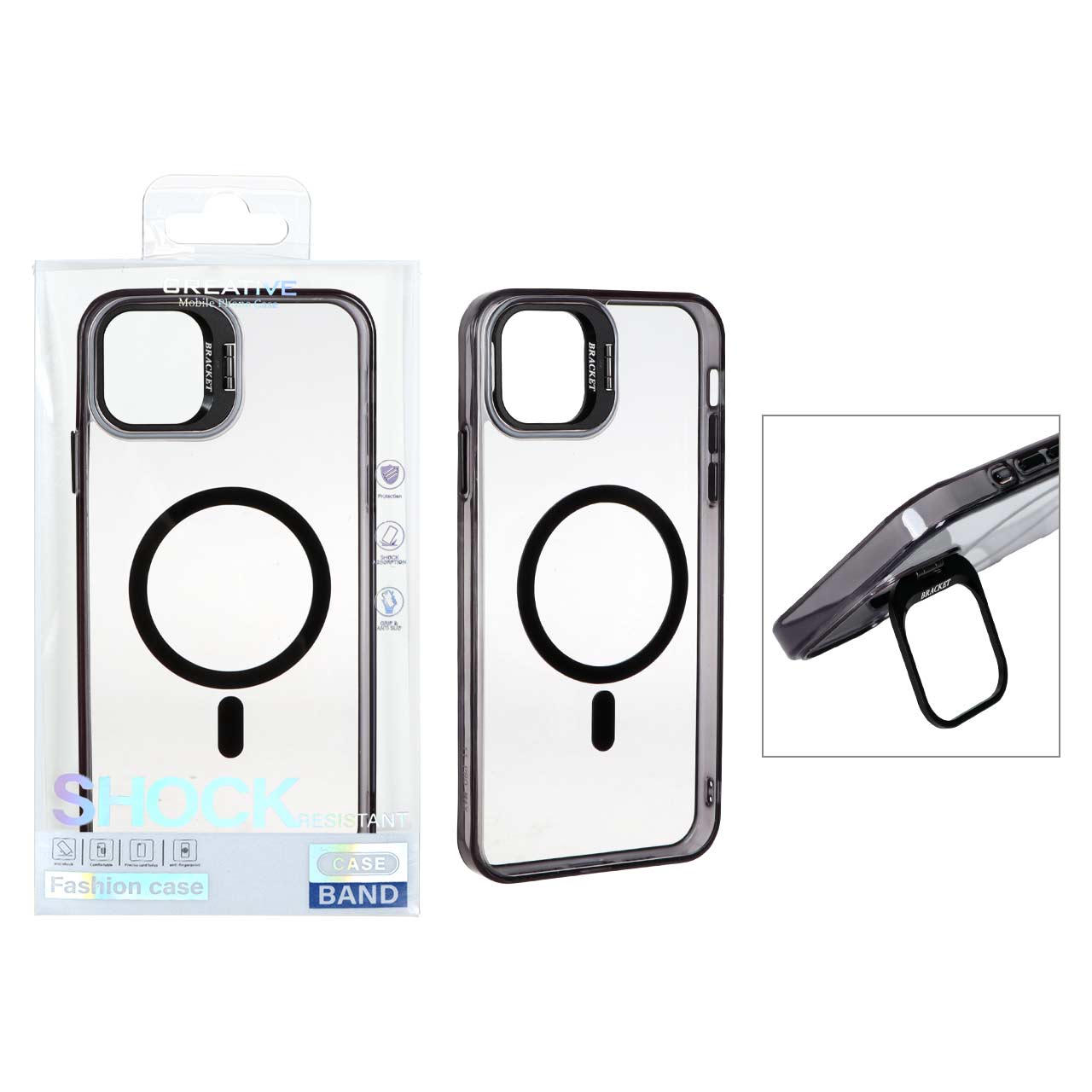 قاب اورجینال Bracket کریستالی MagSafe لنز آلومینیومی Apple iPhone 11 Pro Max - مشکی (پک دار)
