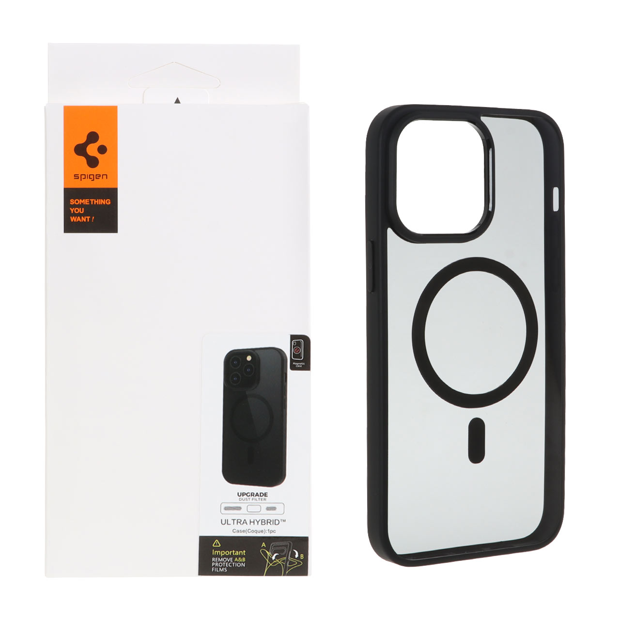 قاب اورجینال Magsafe Spigen با توری اسپیکر فلزی Apple iPhone 14 Pro Max - مشکی (پک دار)