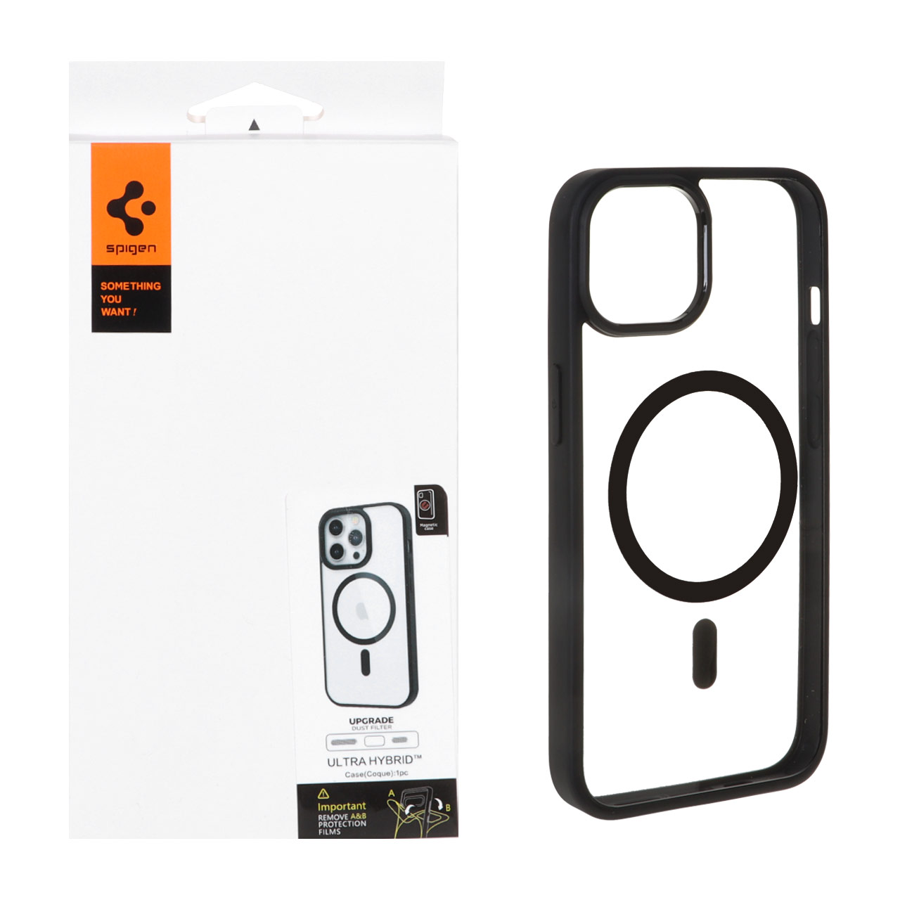 قاب اورجینال Magsafe Spigen با توری اسپیکر فلزی Apple iPhone 13 / iPhone 14 - شفاف مشکی (پک دار)