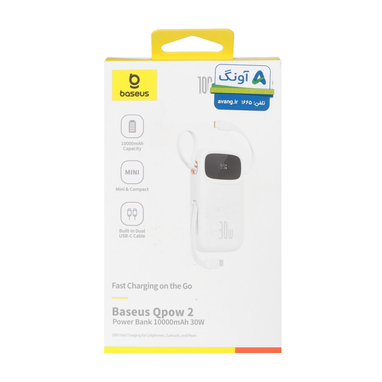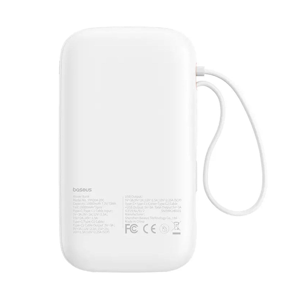 پاوربانک (فست شارژ) Baseus 10000mAh مدل Qpow 2 PPQD4-10C 30W - سفید (گارانتی آونگ)