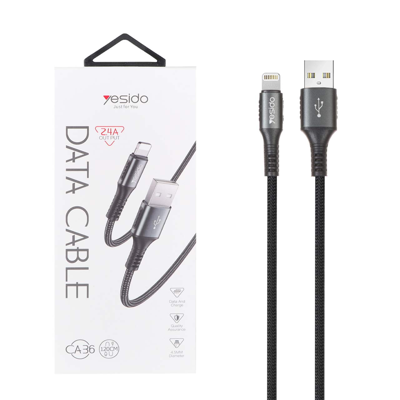 کابل شارژ فست 1.2 متری آیفون Yesido مدل CA36 - مشکی