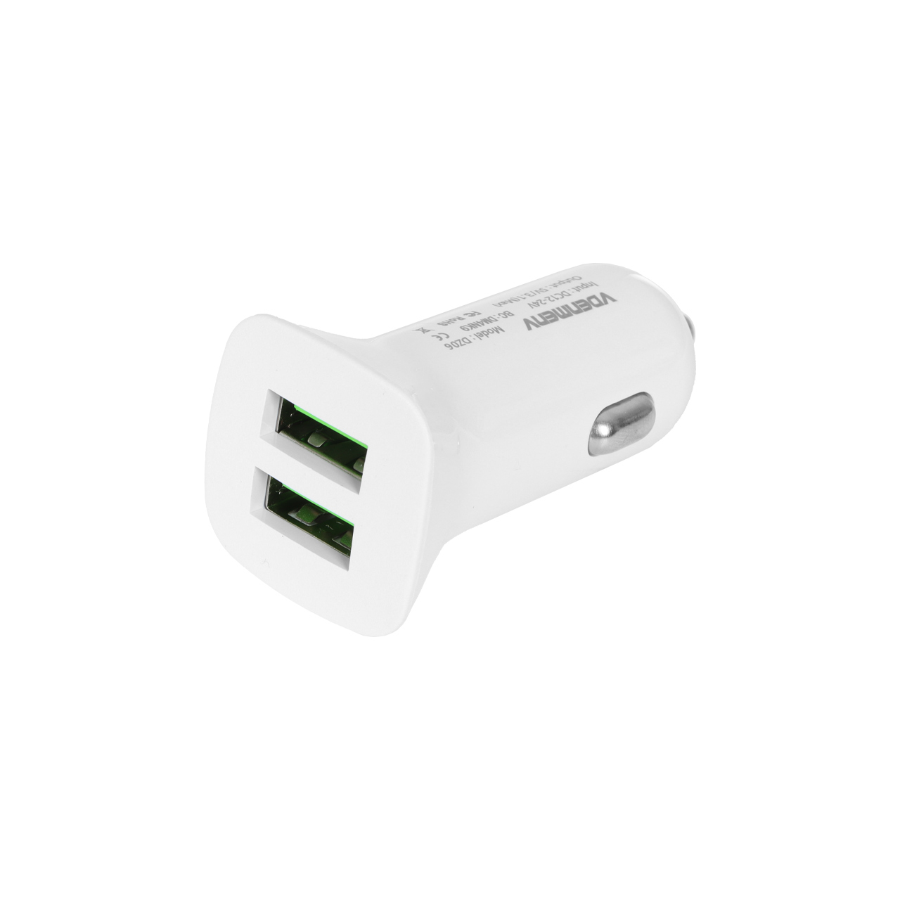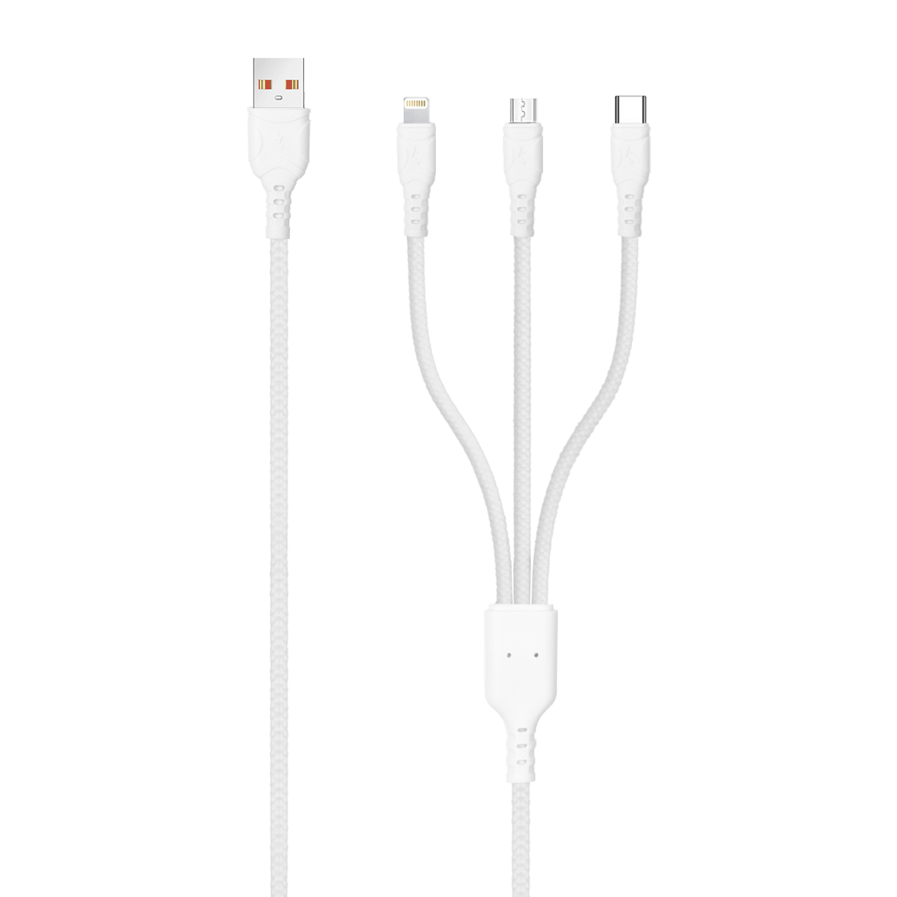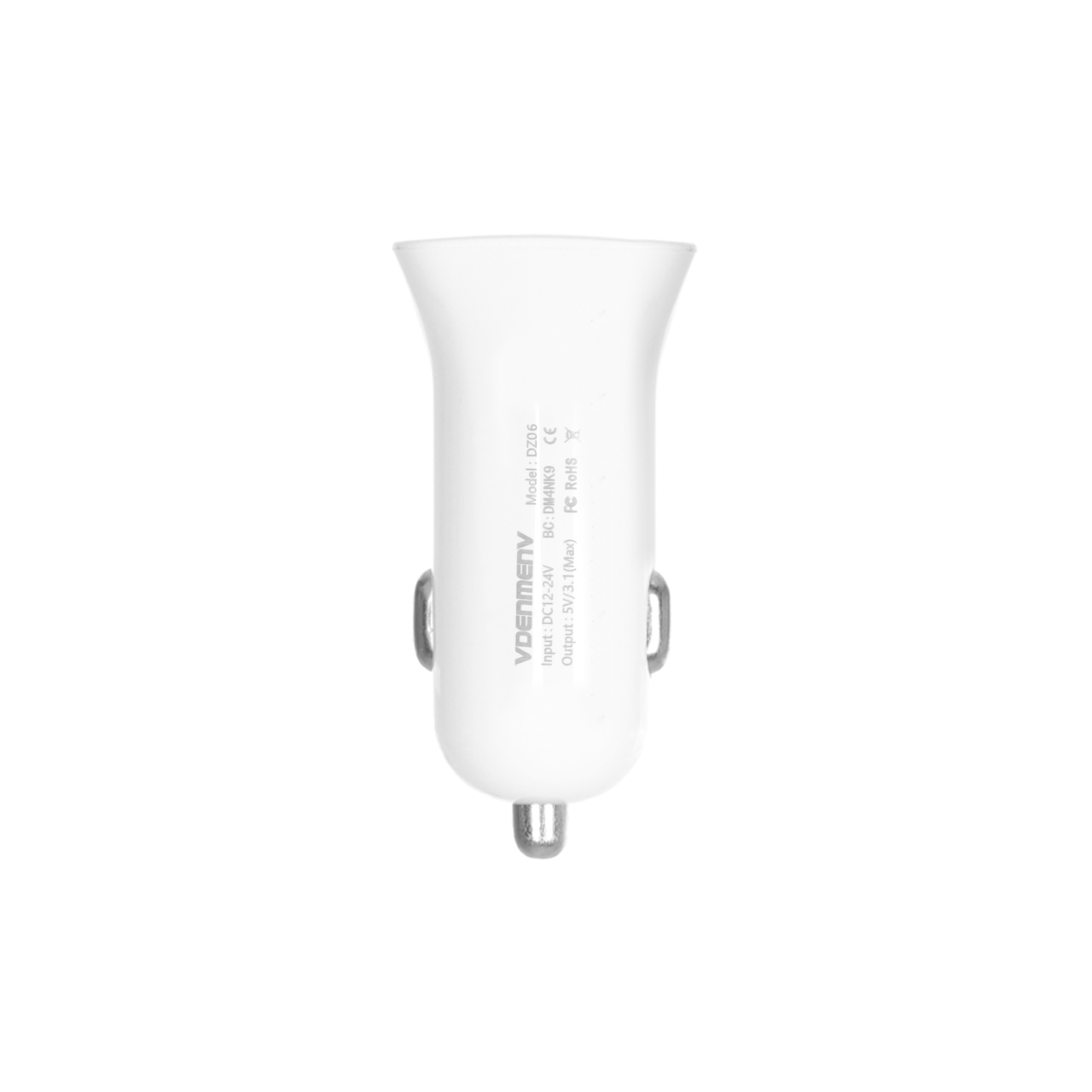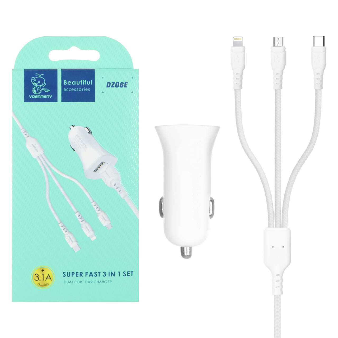 شارژر فندکی فست دو پورت DENMEN مدل DZ06E 15W به همراه کابل شارژ سه کاره - سفید (گارانتی دوساله ایویز)
