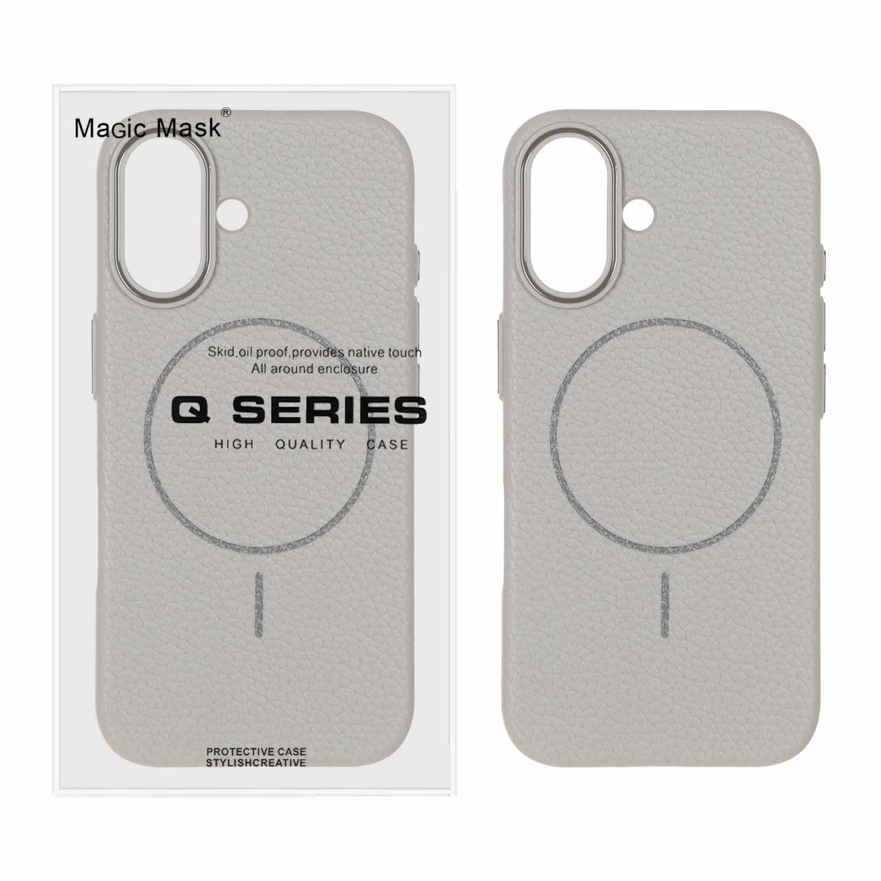 قاب اورجینال Magic Mask طرح چرم Magsafe مدل Apple iPhone 16 - طوسی (پک دار)