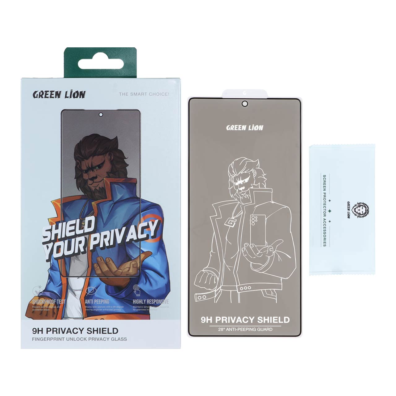 محافظ صفحه نمایش شیشه ای اورجینال Green Lion Crystal Shield Privacy مدل Samsung Galaxy S25 Ultra (پک دار)
