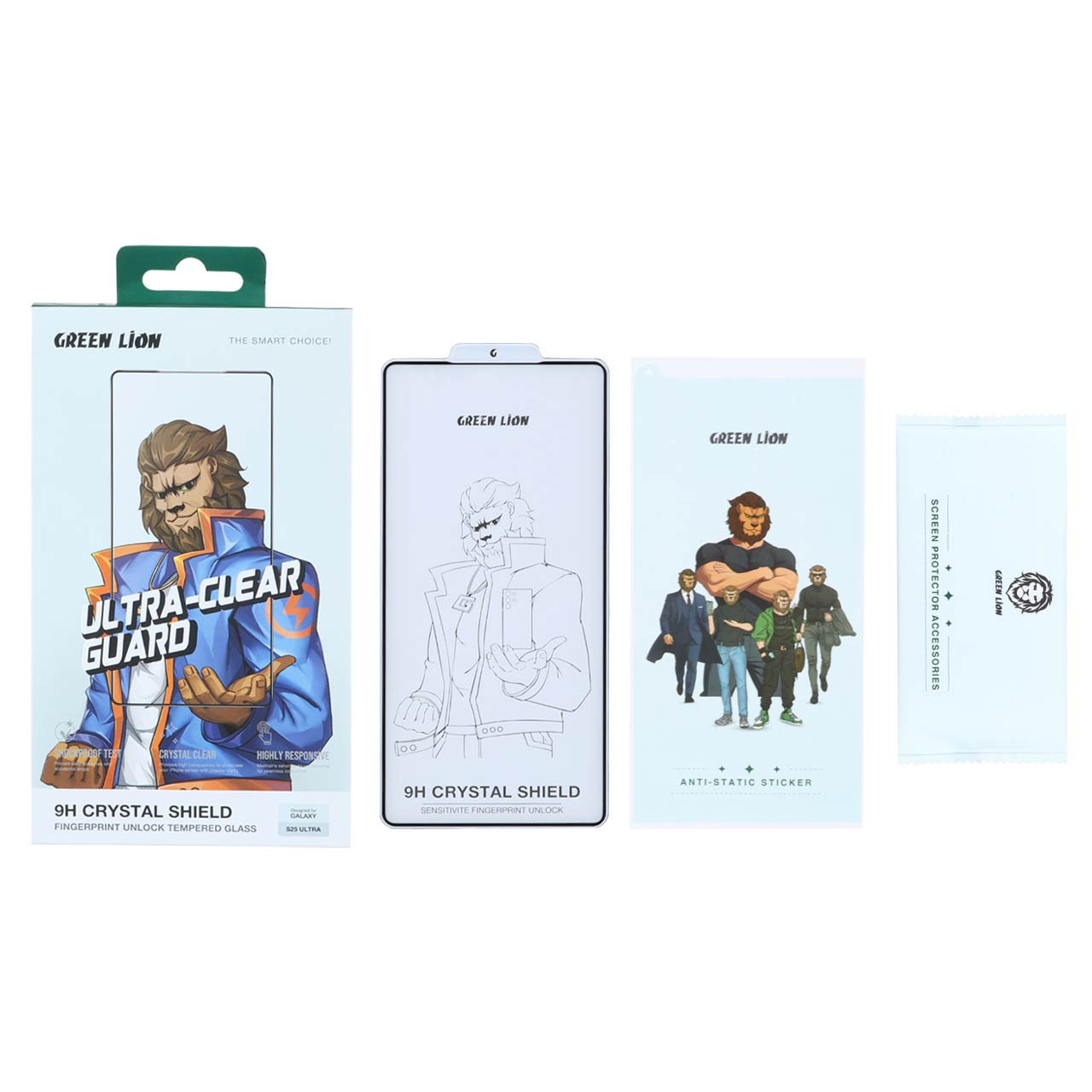 محافظ صفحه نمایش شیشه ای اورجینال Green Lion Crystal Shield مدل Samsung Galaxy S25 Ultra (پک دار)