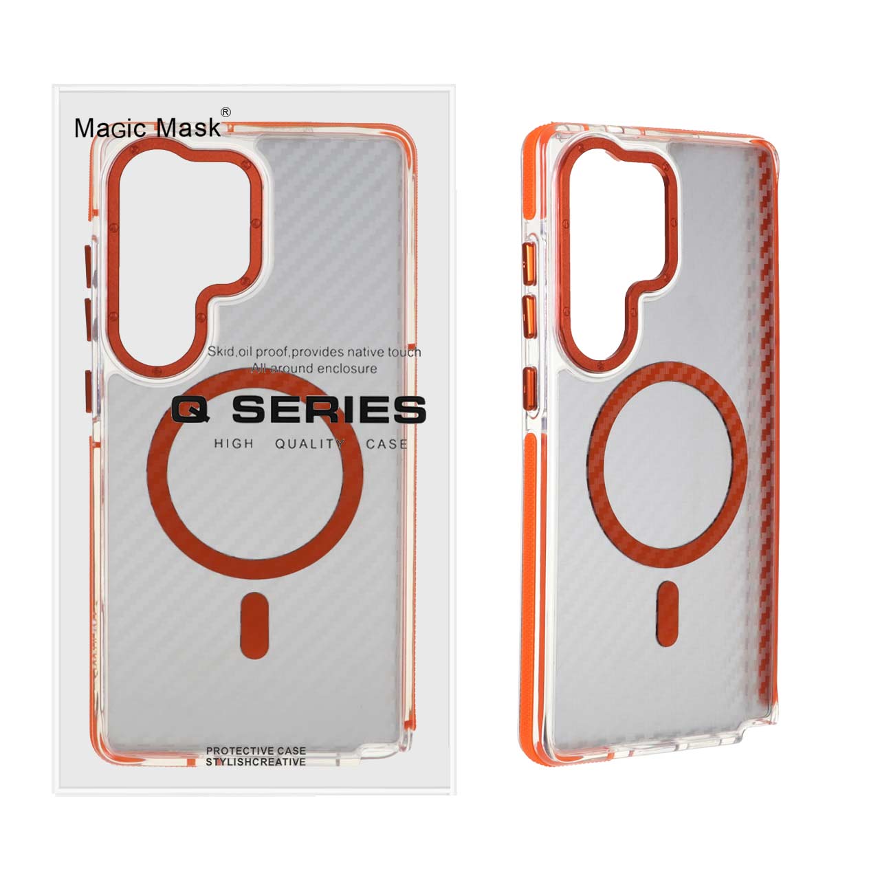 قاب اورجینال Q Series پشت کربن MagSafe مدل Samsung Galaxy S25 Ultra - نارنجی (پک دار)