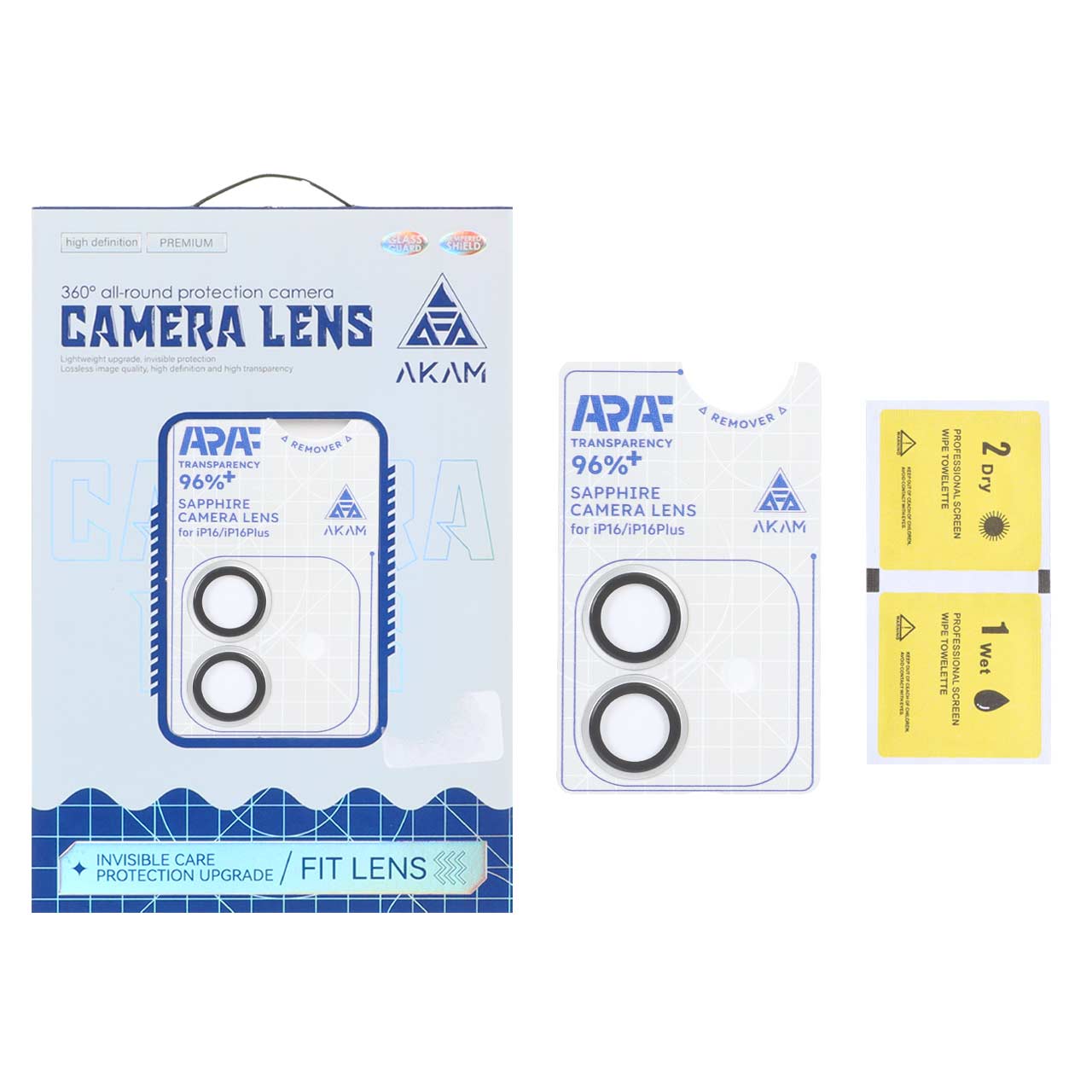 محافظ لنز رینگی اورجینال Akam شابلون دار Apple iPhone 16 / iPhone 16 Plus - نقره ای (پک دار)