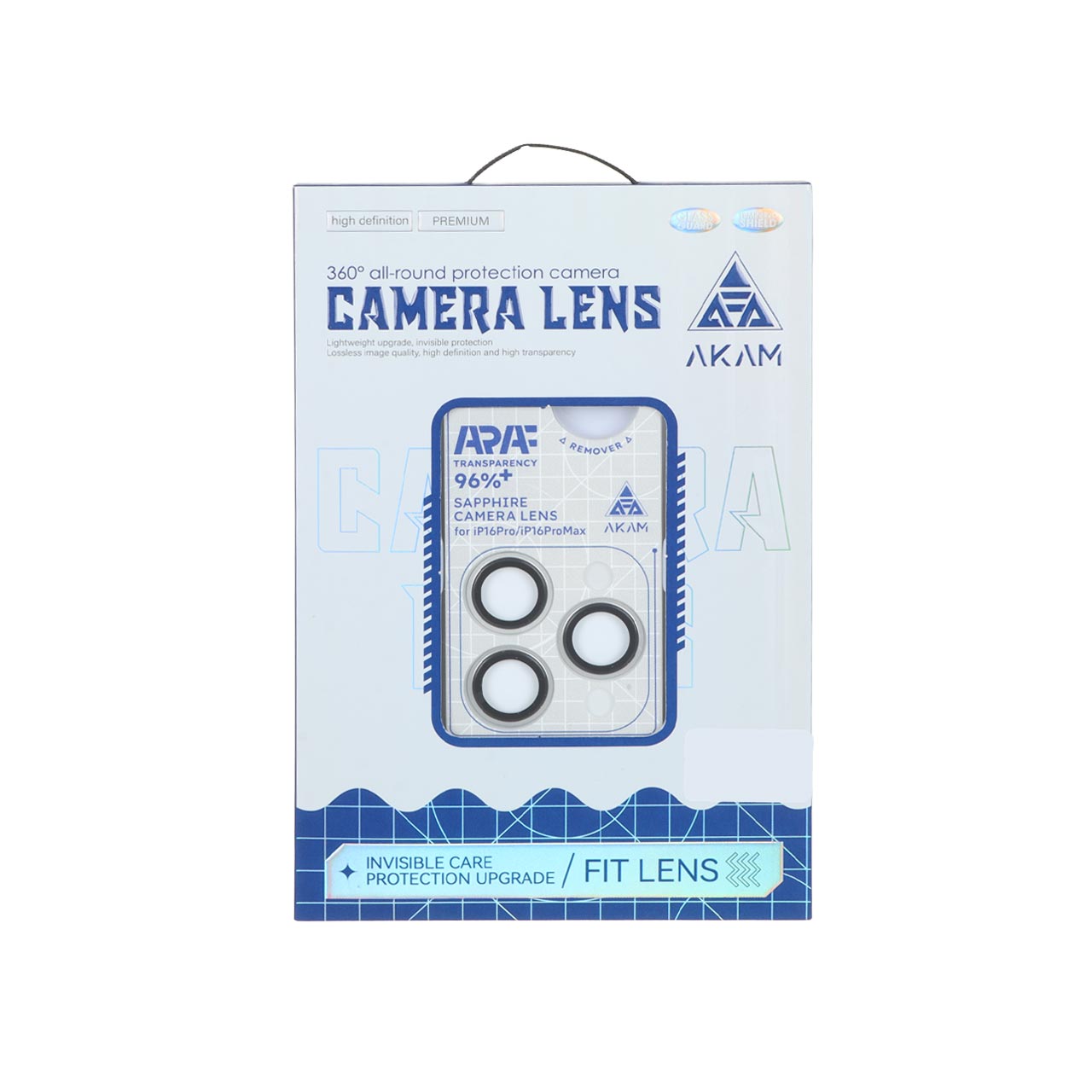 محافظ لنز رینگی اورجینال Akam شابلون دار Apple iPhone 16 Pro / 16 Pro Max - نقره ای (پک دار)