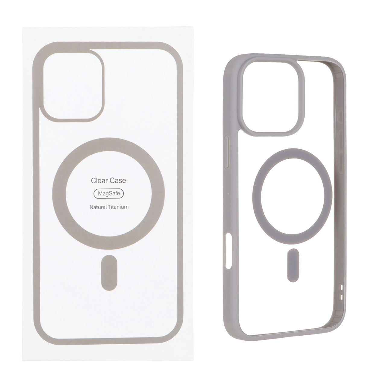 قاب شفاف Apple iPhone 16 Pro Max با قابلیت شارژ MagSafe - خاکستری روشن (پک دار)
