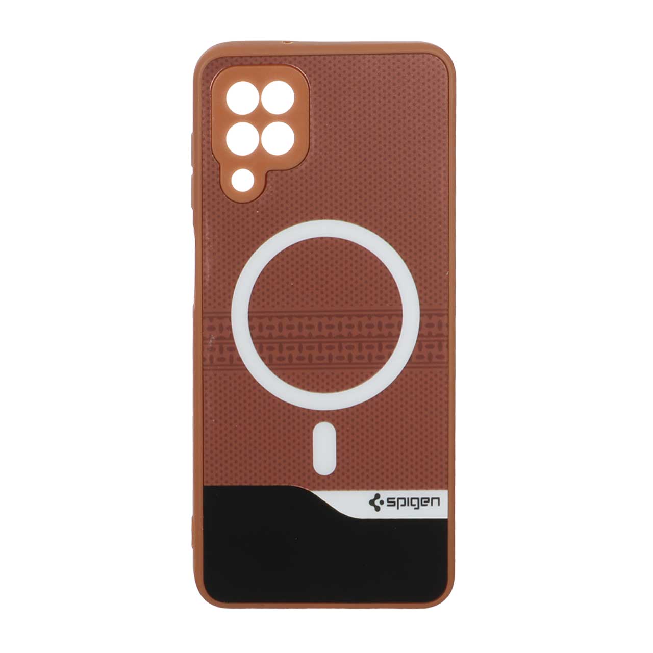 قاب Spigen دو تکه طرح مگ سیف محافظ لنزدار Samsung Galaxy A12 / M12 / F12 - قهوه ای کد 1