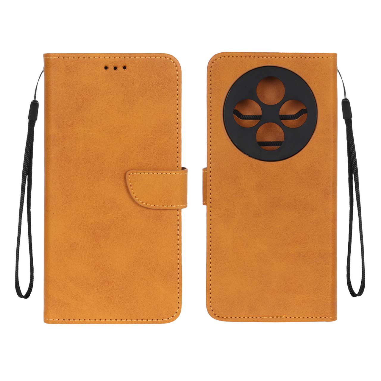 کیف چرمی موبایل مگنتی محافظ لنزدار Xiaomi Redmi 14C / Poco C75 - عسلی
