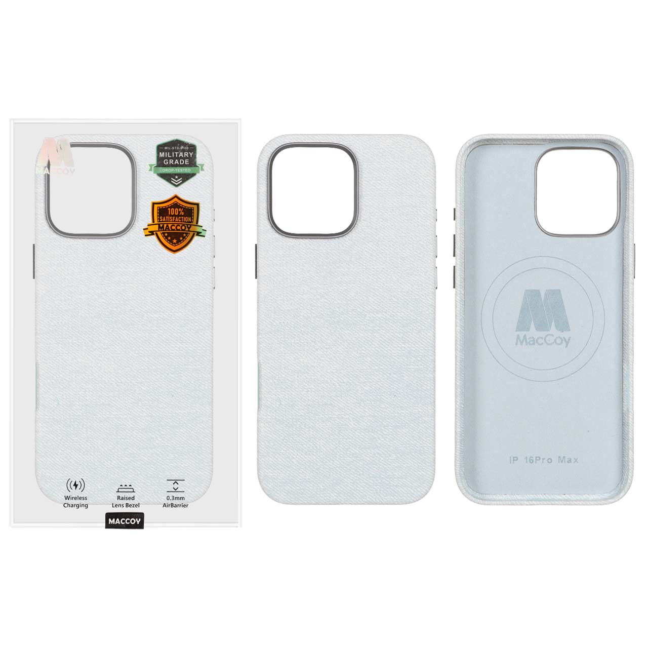 قاب اورجینال MacCoy پارچه ای لنز فلزی Magsafe Apple iPhone 16 Pro Max - آبی (پک دار)