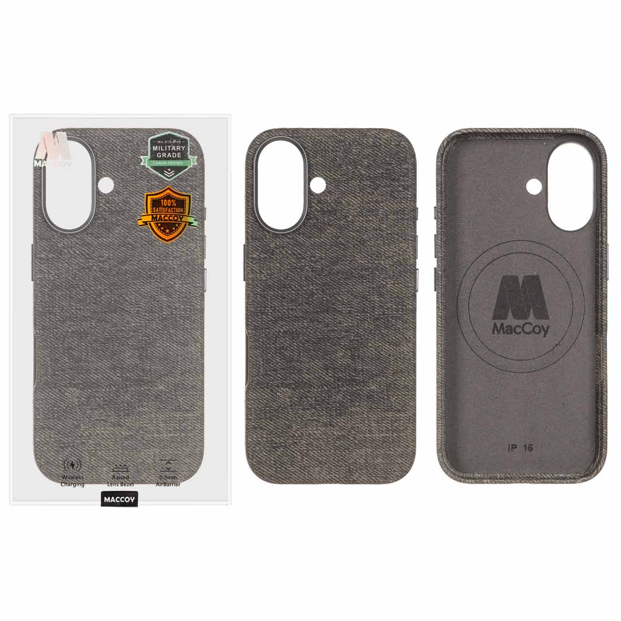 قاب اورجینال MacCoy پارچه ای لنز فلزی Magsafe Apple iPhone 16 - خاکستری (پک دار)