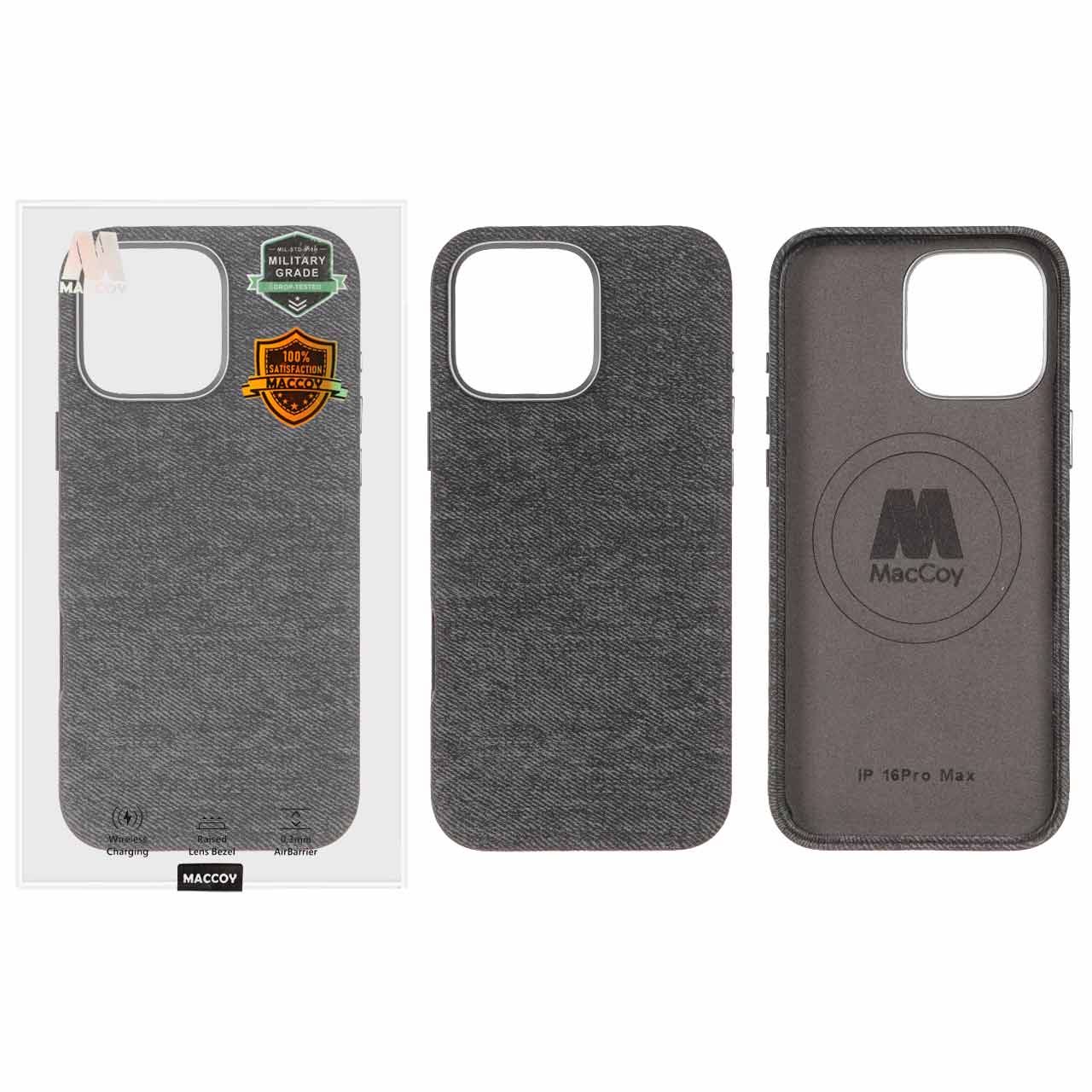 قاب اورجینال MacCoy پارچه ای لنز فلزی Magsafe Apple iPhone 16 Pro Max - مشکی (پک دار)