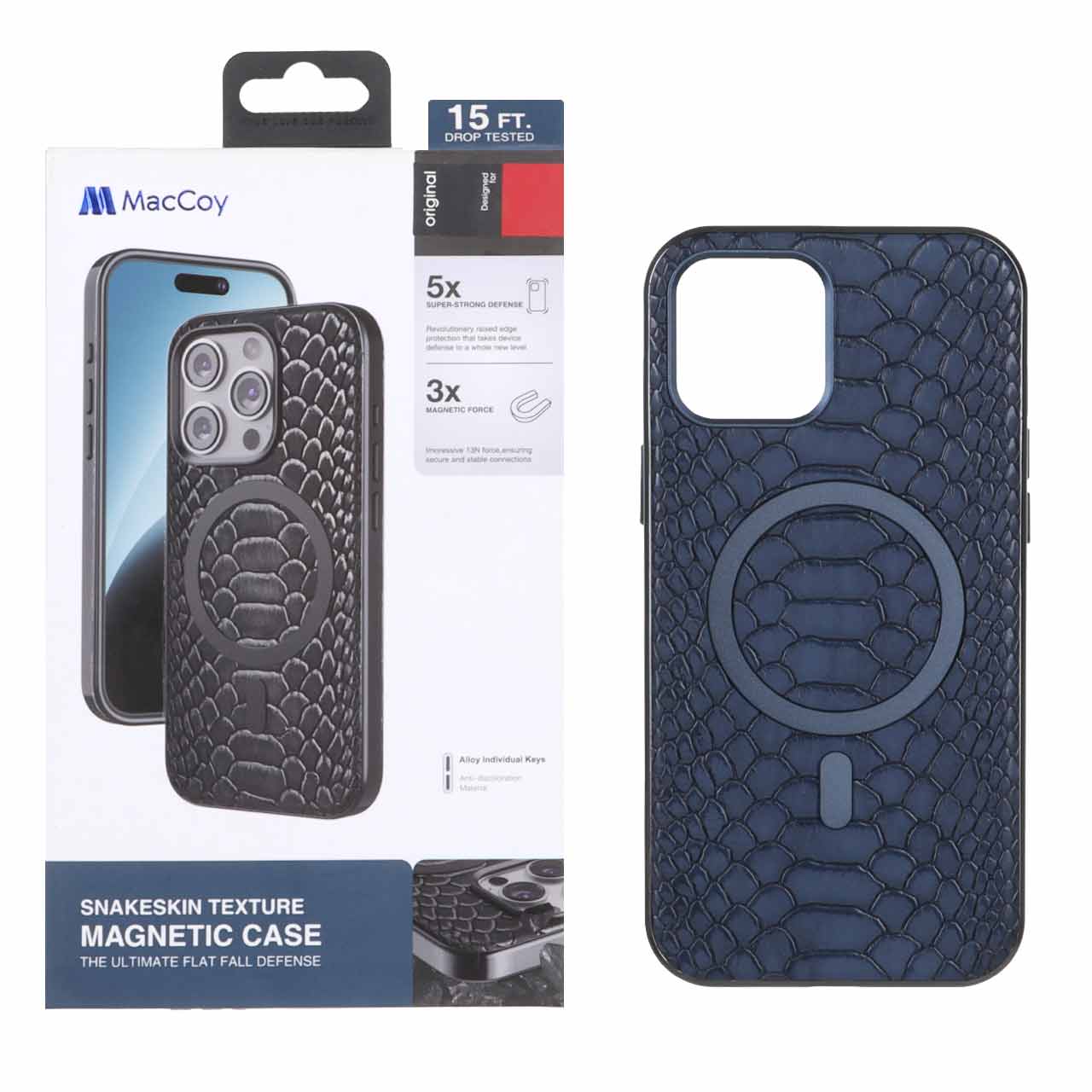 قاب اورجینال MacCoy چرمی پوست ماری MagSafe مدل Apple iPhone 12 Pro Max - سرمه ای (پک دار)