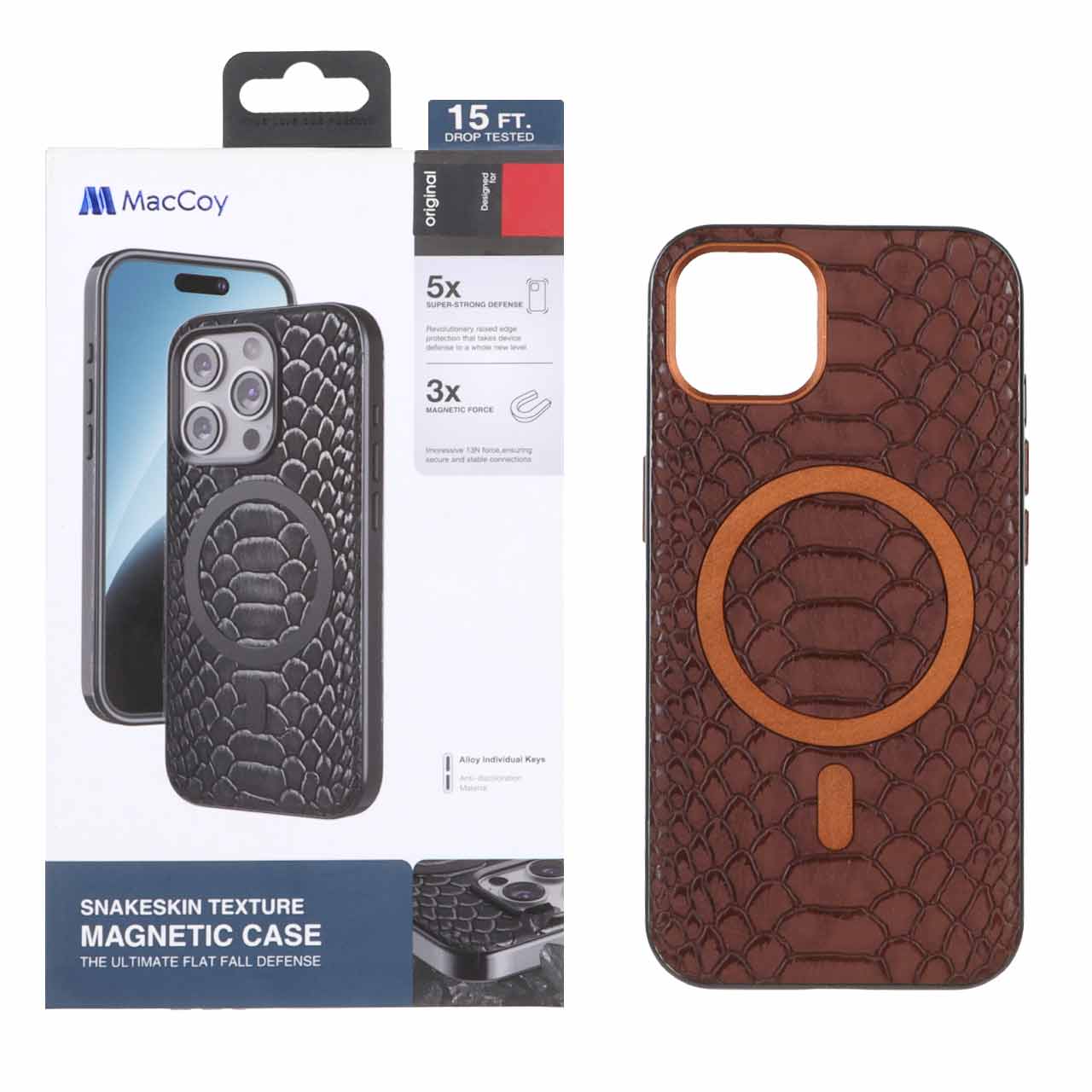 قاب اورجینال MacCoy چرمی پوست ماری MagSafe مدل Apple iPhone 13 / iPhone 14 - صحرایی (پک دار)