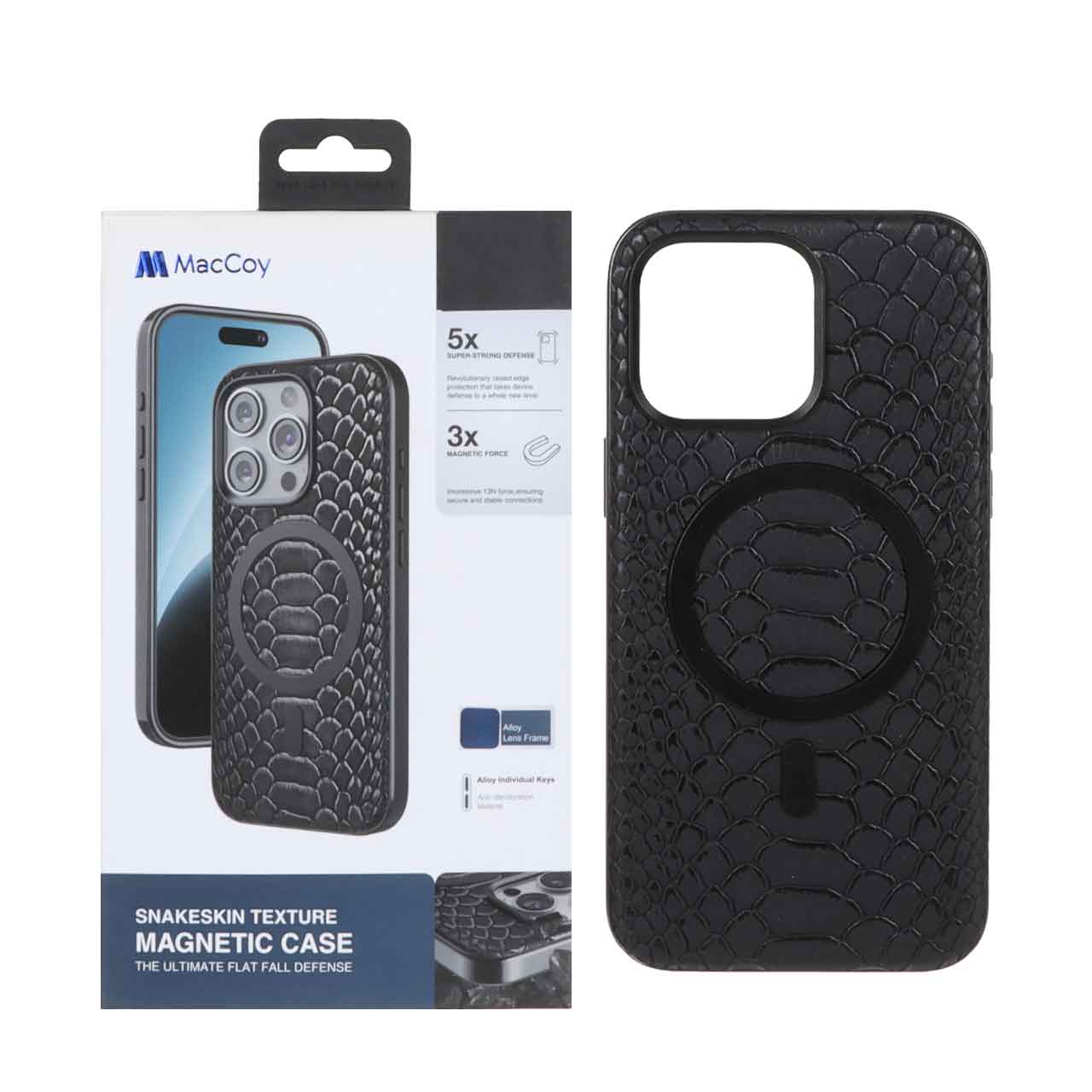 قاب اورجینال MacCoy چرمی پوست ماری MagSafe مدل Apple iPhone 15 Pro Max - مشکی (پک دار)