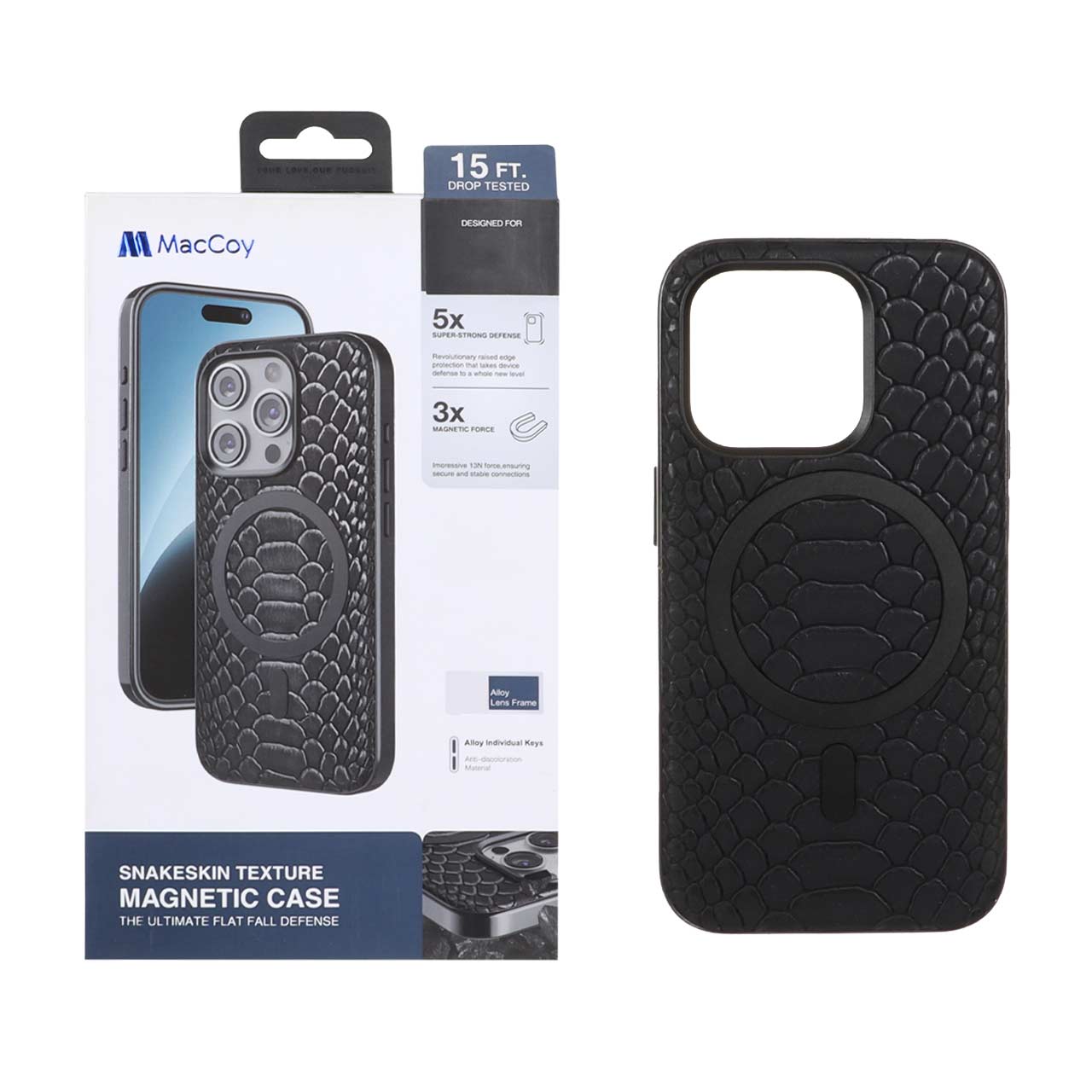 قاب اورجینال MacCoy چرمی پوست ماری MagSafe مدل Apple iPhone 15 Pro - مشکی (پک دار)