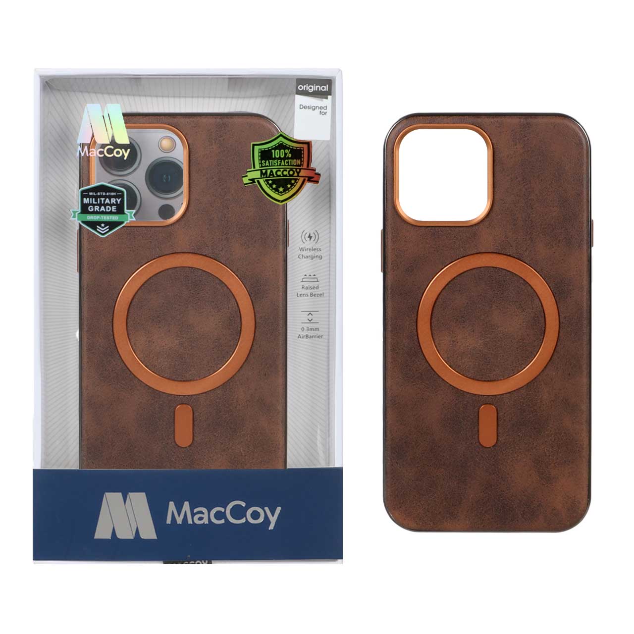 قاب اورجینال MacCoy چرمی Magsafe Military مدل Apple iPhone 13 Pro Max - قهوه ای (پک دار)