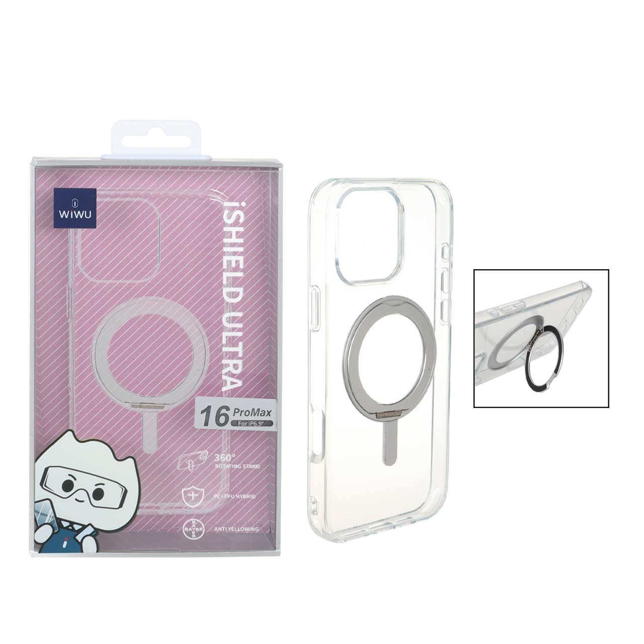 قاب اورجینال Wiwu ishield Ultra شفاف MagSafe استندشو Apple iPhone 16 Pro Max - نقره ای (پک دار)