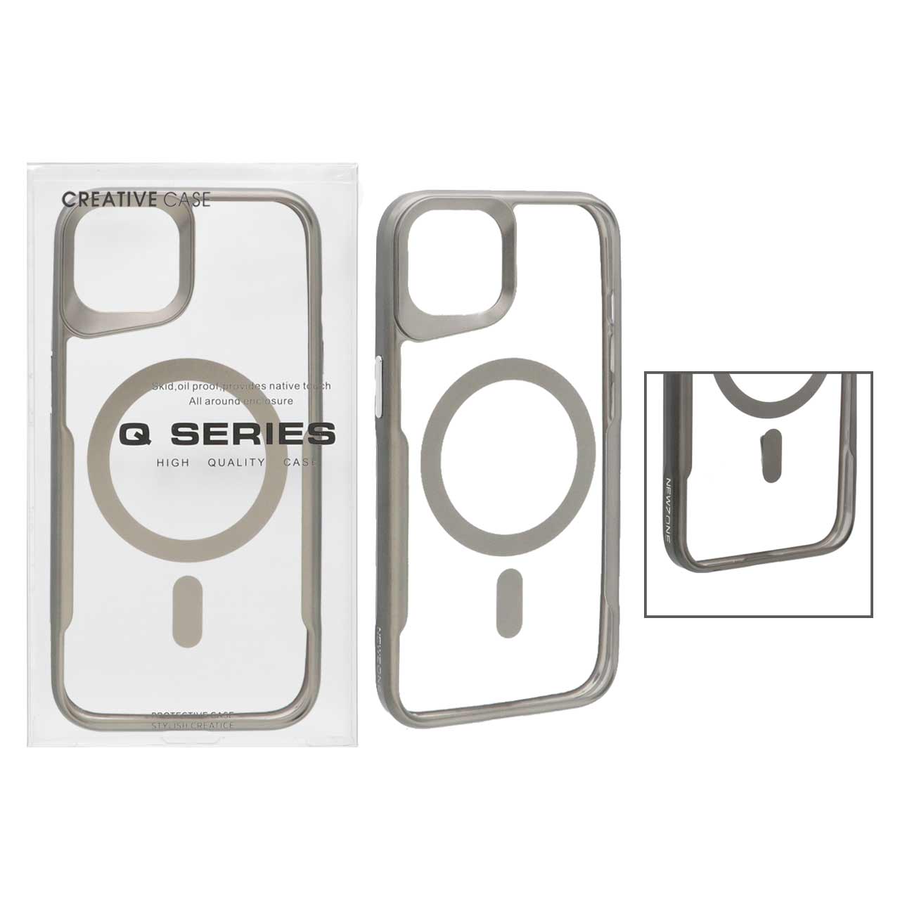 قاب اورجینال Newzone شفاف Magsafe مدل Apple iPhone 13 / iPhone 14 - خاکستری (پک دار)