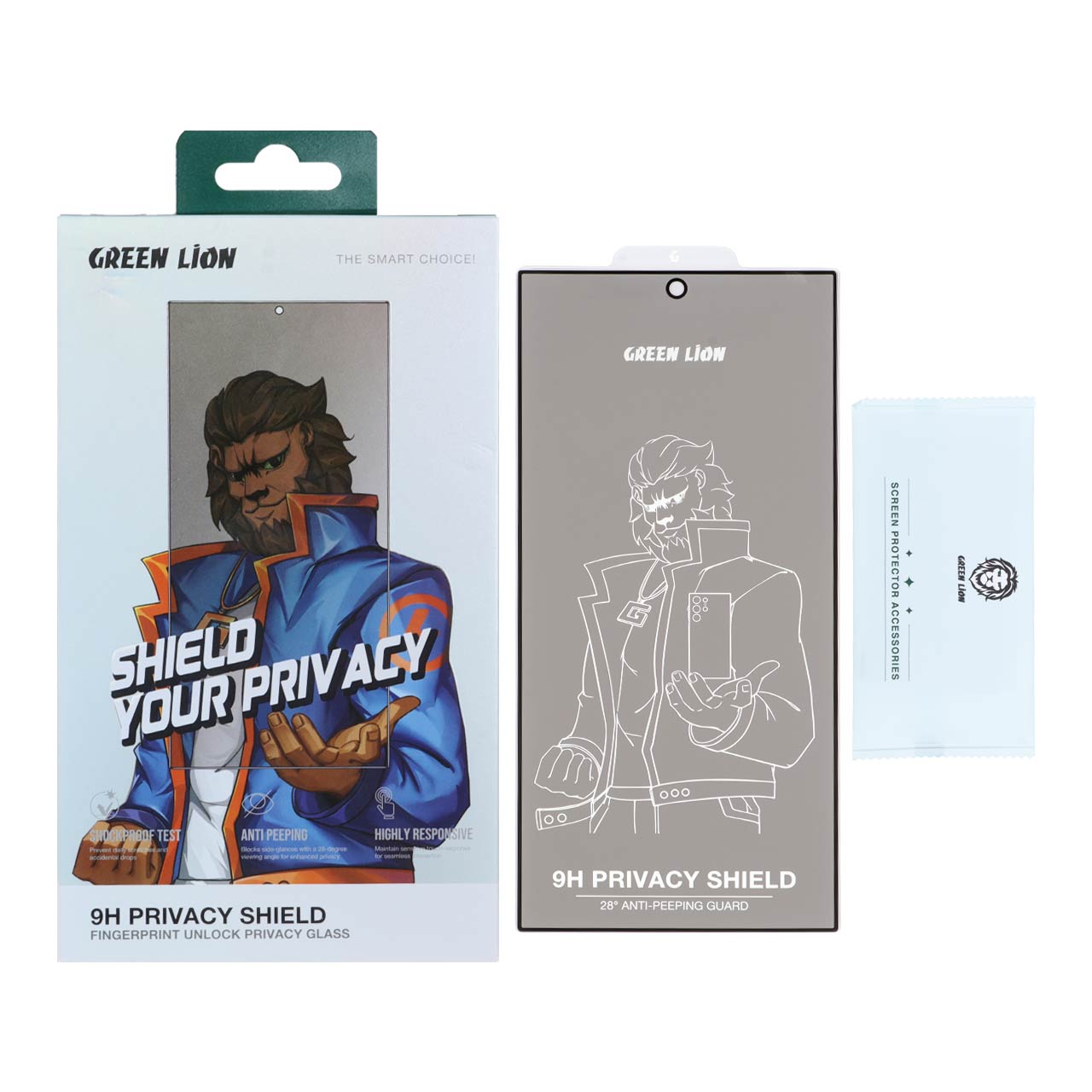 محافظ صفحه نمایش شیشه ای اورجینال Green Lion Crystal Shield Privacy مدل Samsung Galaxy S24 Ultra (پک دار)
