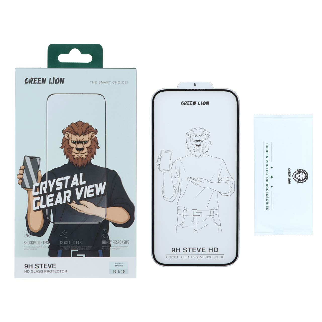 محافظ صفحه نمایش شیشه ای اورجینال Green Lion Steve مدل Apple iPhone 16 (پک دار)