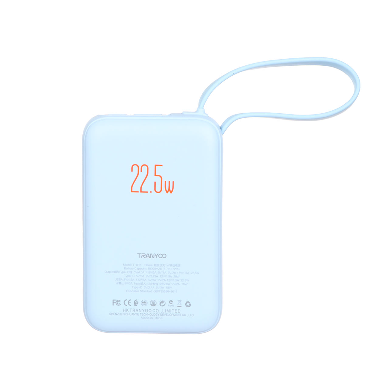 Type-C Cable&USB : 5V/4.5A - 4.5V/5A - 5V/3A - 9V/2A - 12V/1.5A  -  Type-C : 5V/3A - 9V/2.22A - 12V/1.5A
