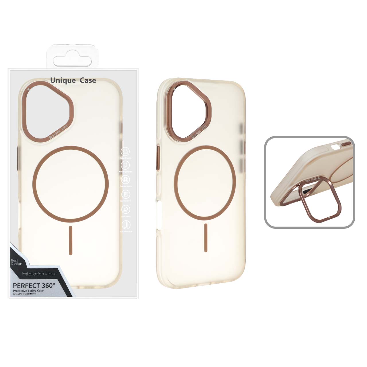 قاب Bracket Lens مات MagSafe لنز استندشو Apple iPhone 16 - صحرایی (پک دار)