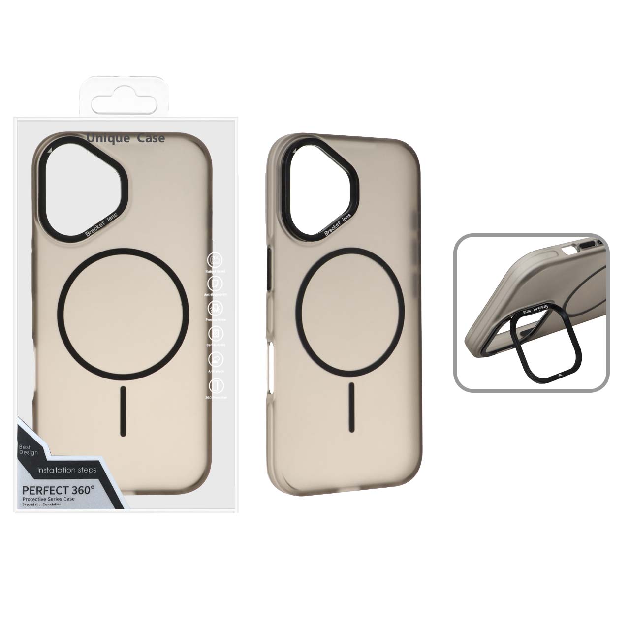 قاب Bracket Lens مات MagSafe لنز استندشو Apple iPhone 16 - مشکی (پک دار)