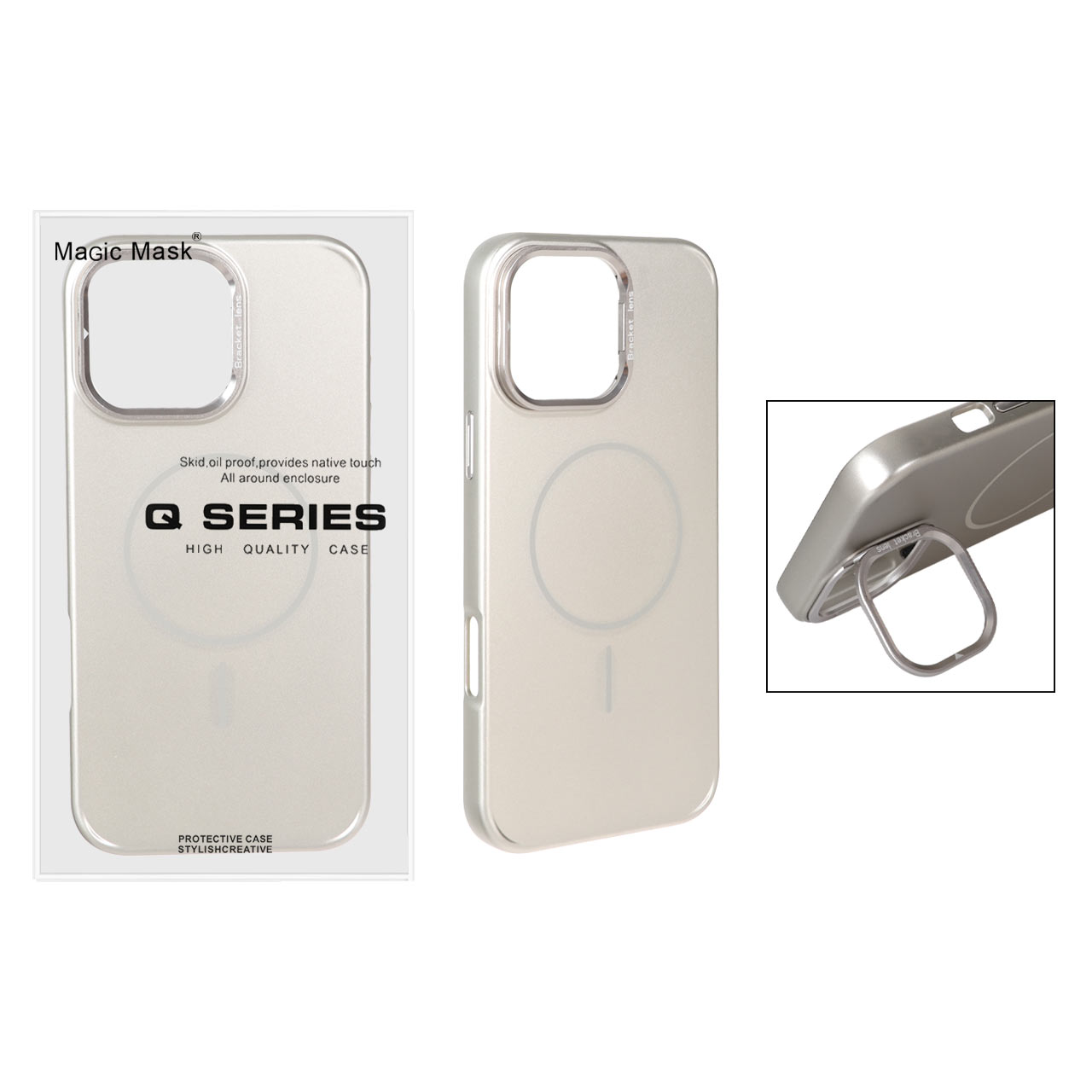 قاب Bracket Lens Q Series لنز آلومینیومی استندشو MagSafe مدل Apple iPhone 16 Pro Max - خاکستری روشن (پک دار)
