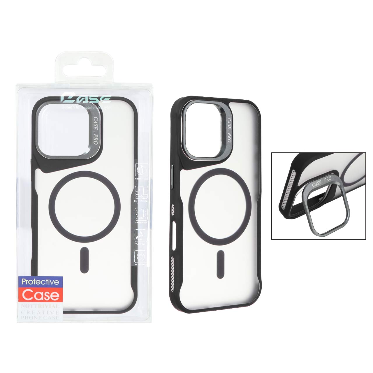 قاب اورجینال Case Pro محافظ لنز آلومینیومی استندشو Apple iPhone 16 - مشکی (پک دار)