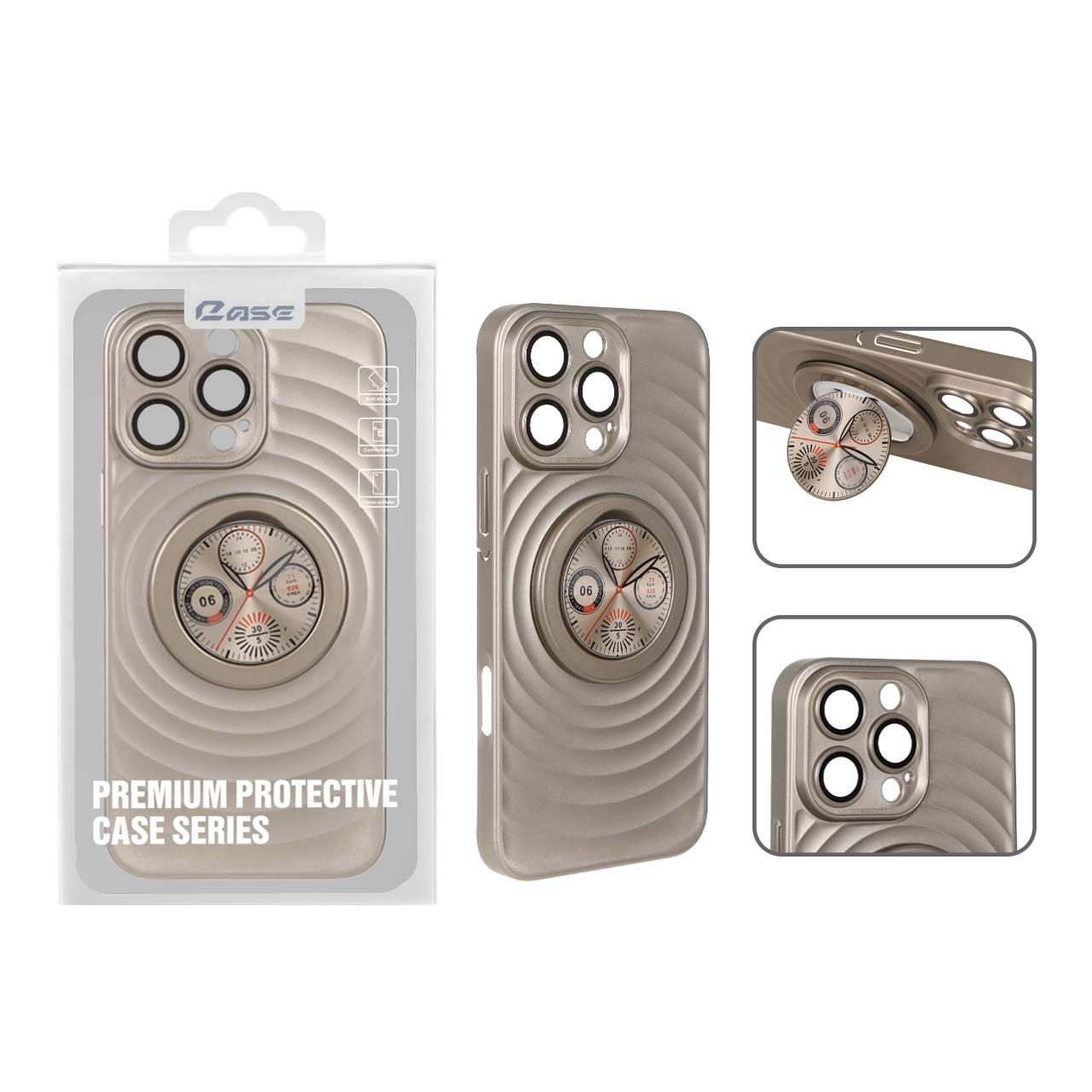 قاب طرح ساعت استندشو محافظ لنز گلس دار مدل Apple iPhone 16 Pro Max - صحرایی (پک دار)