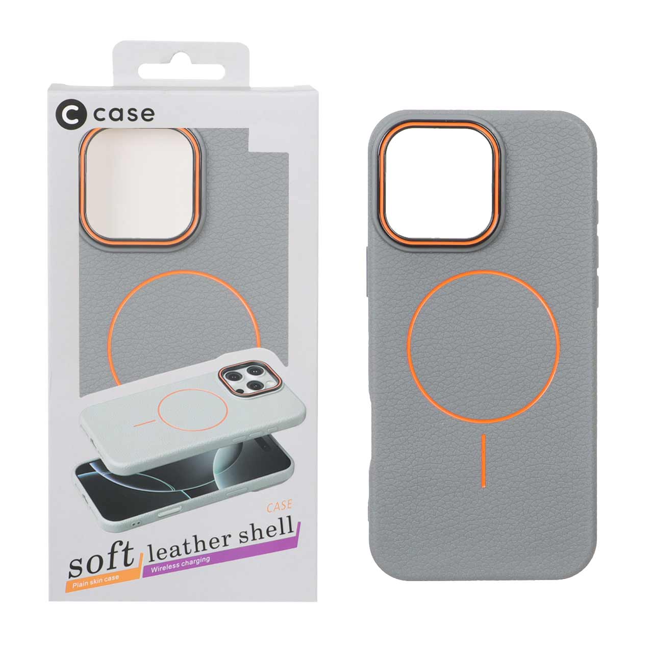 قاب اورجینال C Case طرح چرم MagSafe مدل Apple iPhone 16 Pro Max - خاکستری (پک دار)