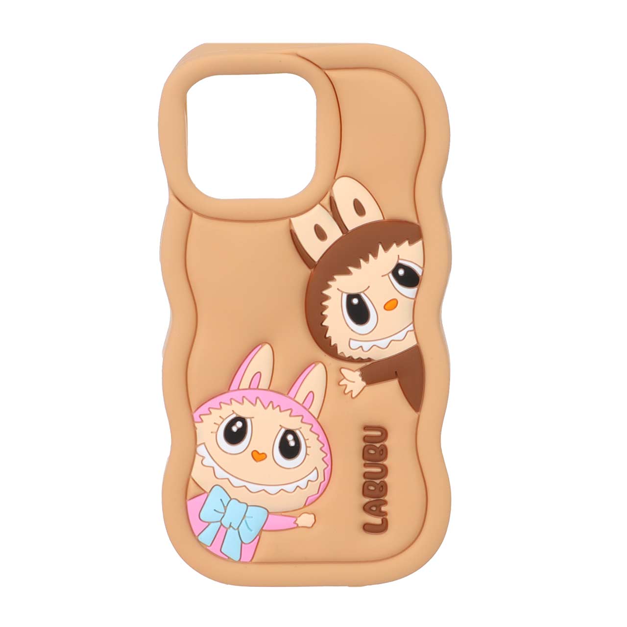 قاب سیلیکونی کنگره ای Labubu برجسته فانتزی Apple iPhone 16 Pro Max - عسلی