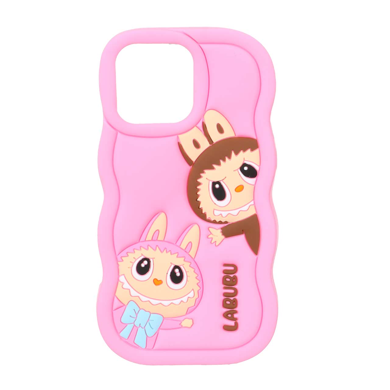قاب سیلیکونی کنگره ای Labubu برجسته فانتزی Apple iPhone 16 Pro Max - صورتی