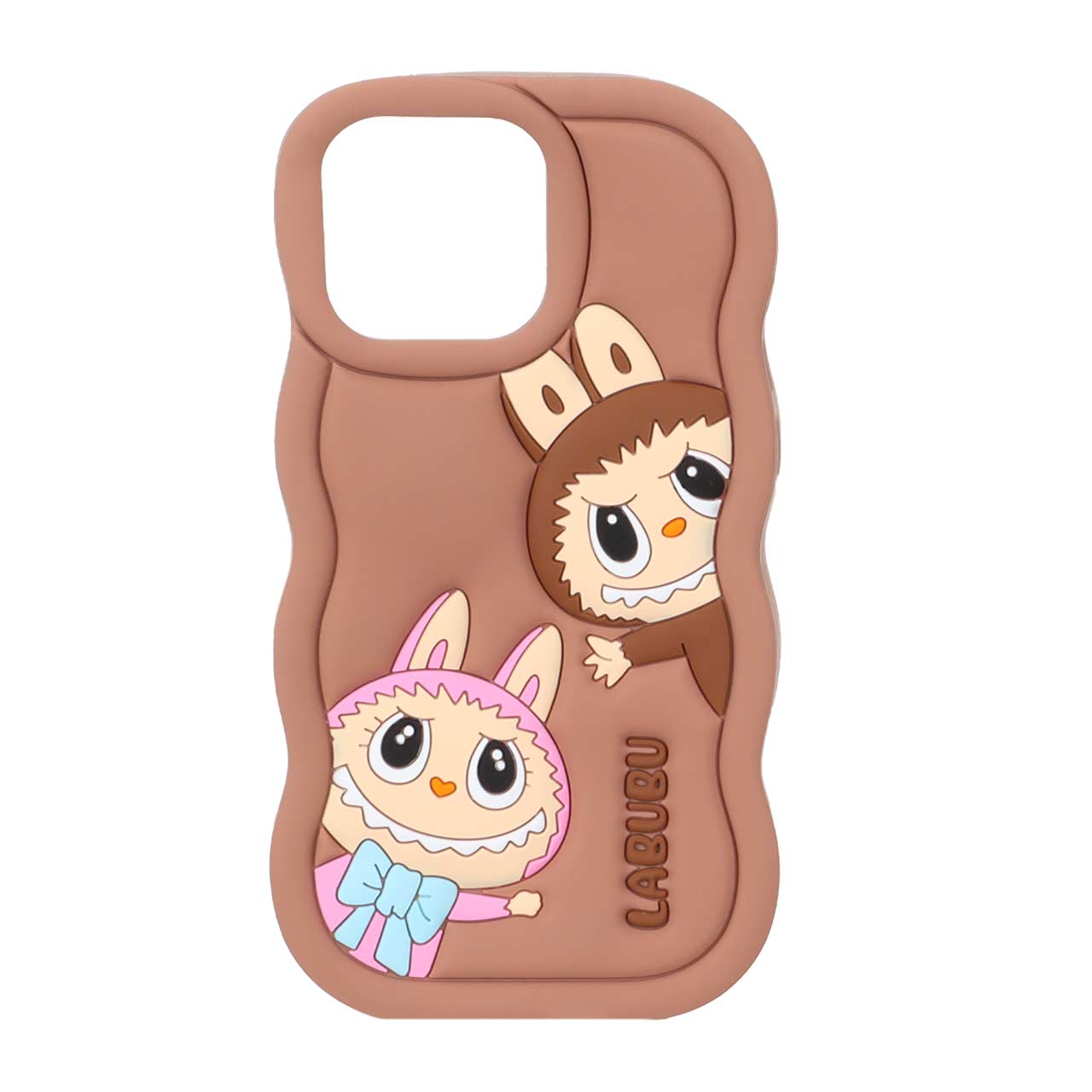 قاب سیلیکونی کنگره ای Labubu برجسته فانتزی Apple iPhone 16 Pro Max - قهوه ای