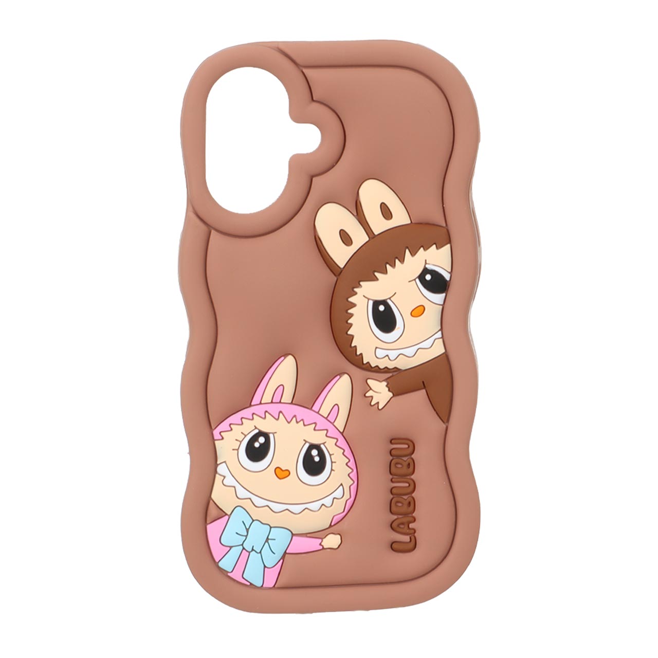 قاب سیلیکونی کنگره ای Labubu برجسته فانتزی Apple iPhone 16 - قهوه ای
