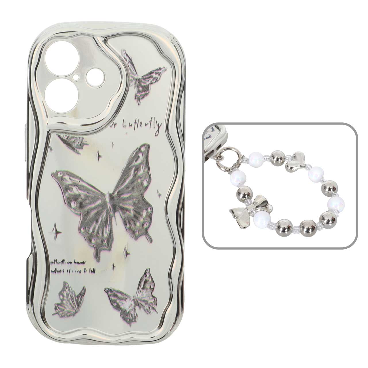 قاب کنگره ای آینه ای طرح دار با آویز مچی مرواریدی Apple iPhone 16 - کد 15