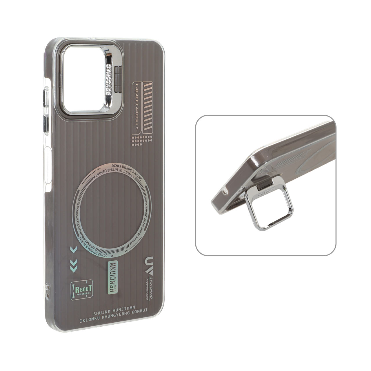 قاب Cyns Case ژله ای دو لایه RT لنز استندشو طرح مگ سیف Samsung Galaxy A06 - خاکستری